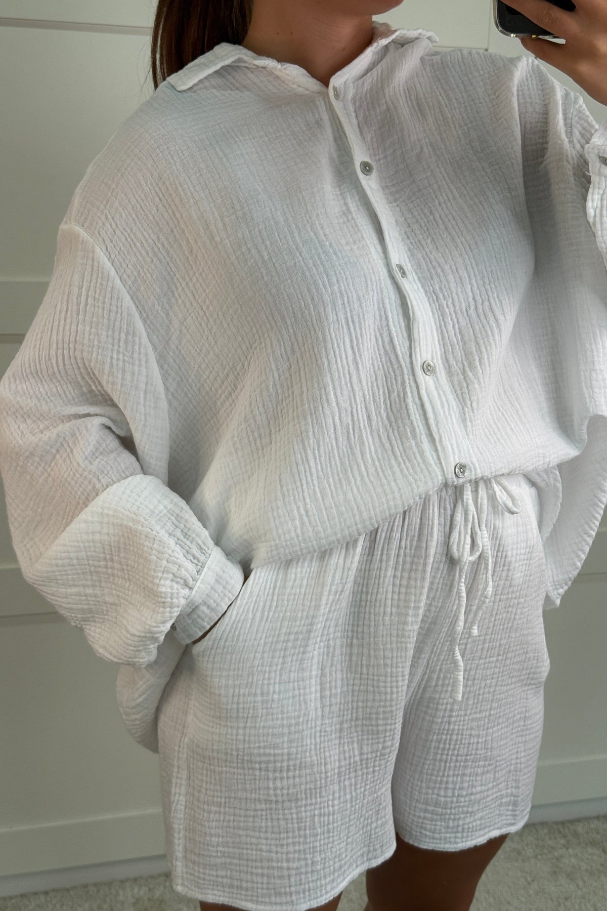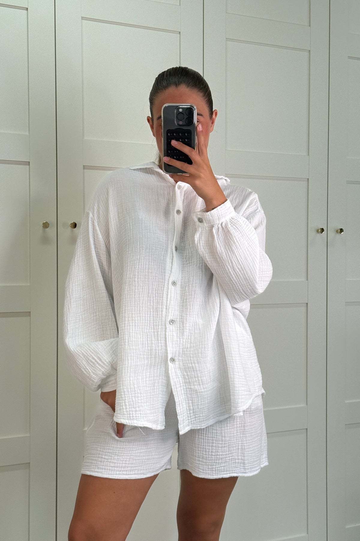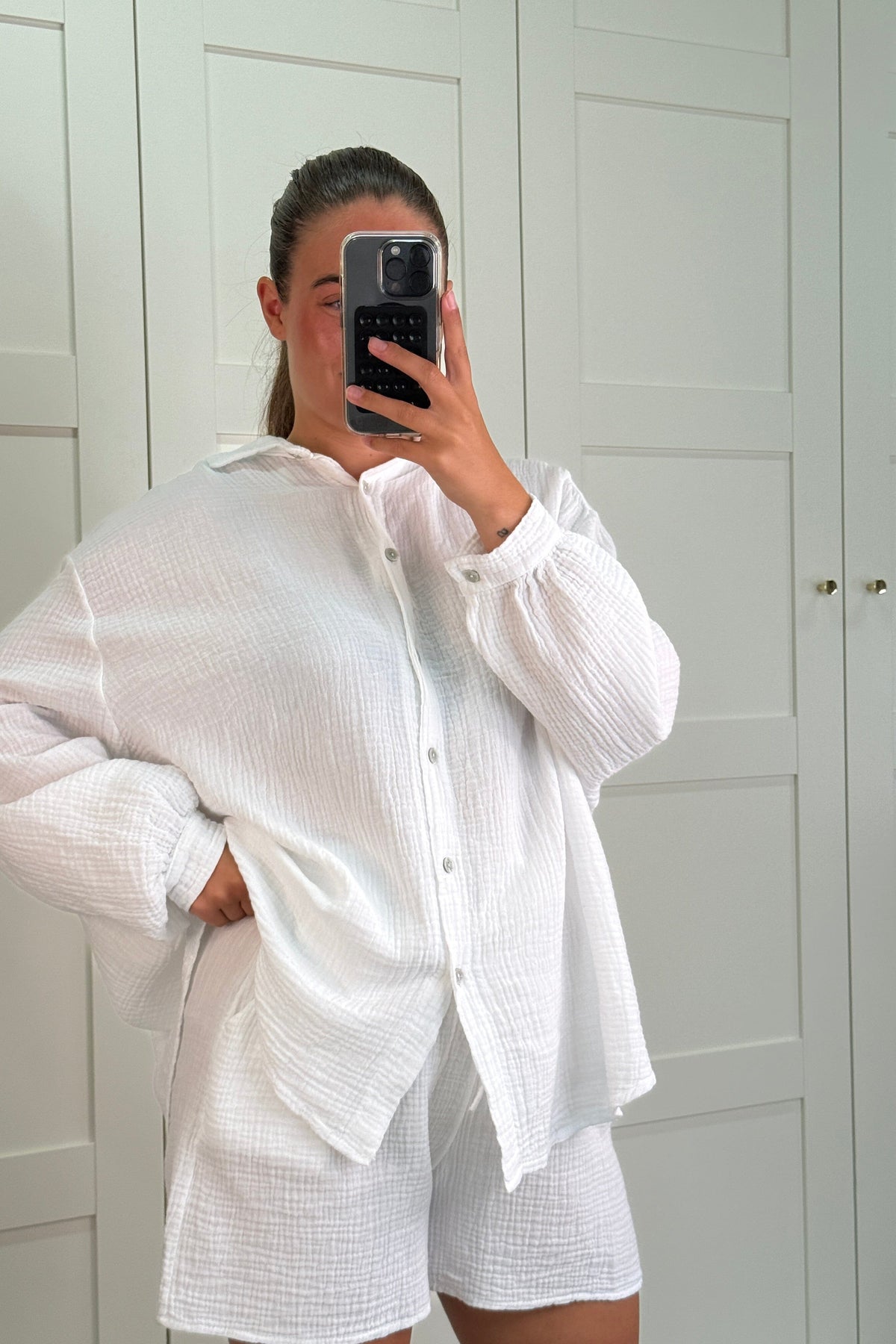 Wit overhemd van A-bee in 100% katoen. Het overhemd heeft een relaxte pasvorm met een strikdetail, waardoor je het op verschillende manieren kunt dragen.