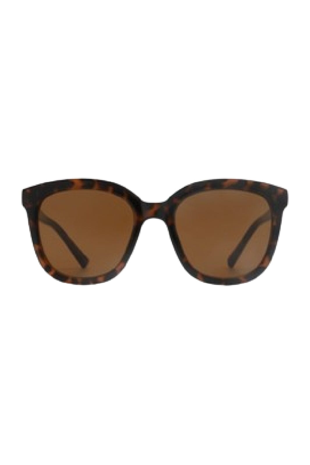 Zonnebrillen van A. Kjærbede in rechthoekige vorm met bruine lenzen. Het montuur heeft een demi tortoise-patroon en is gemaakt van duurzaam polycarbonaat met vervormbare brillenpootjes.