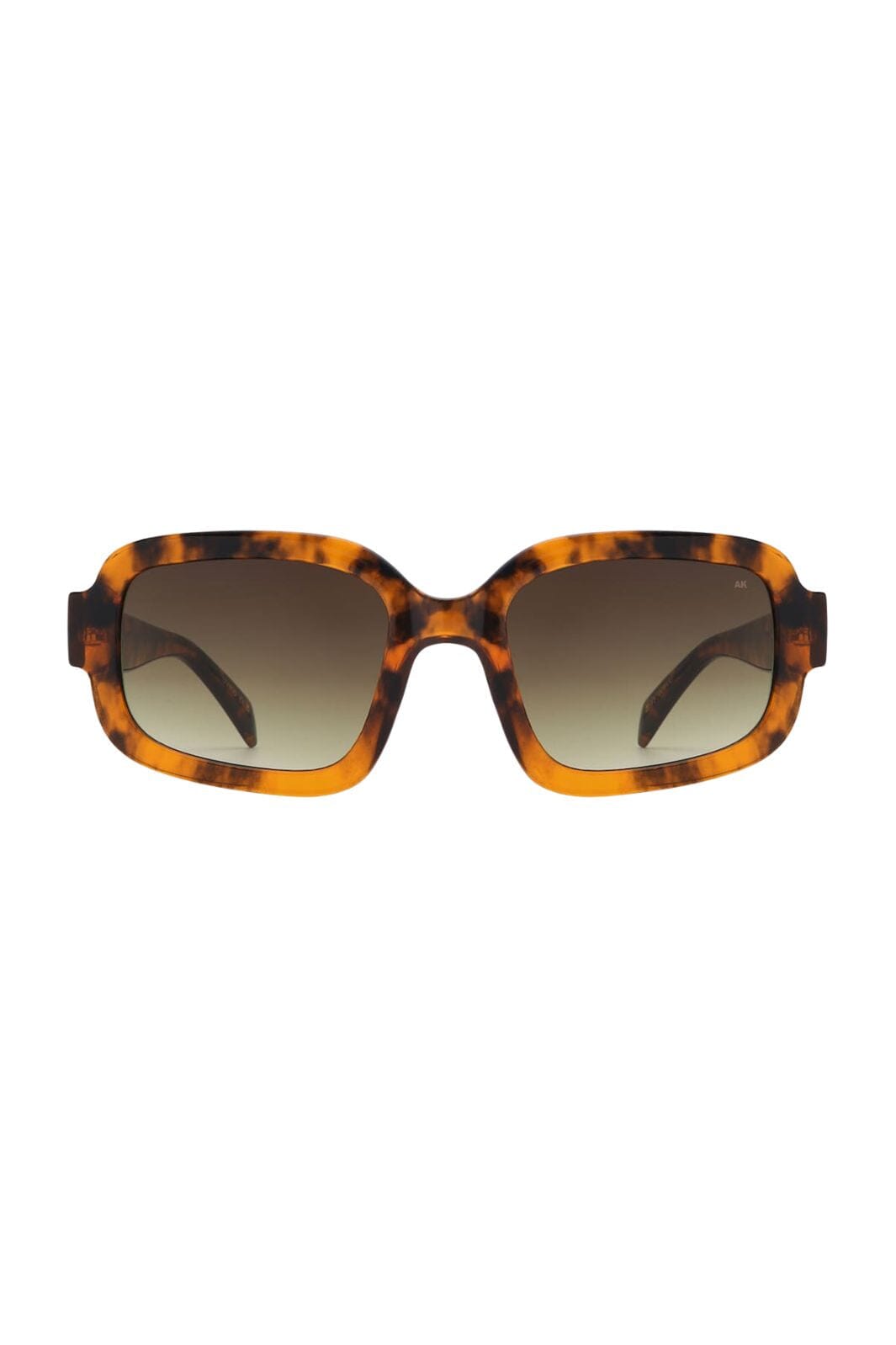 Zonnebrillen van A. Kjærbede met een vierkant montuur in bruine Havana-kleur. Het montuur heeft een schildpadpatroon en getinte gradientlenzen met een stevige rand.