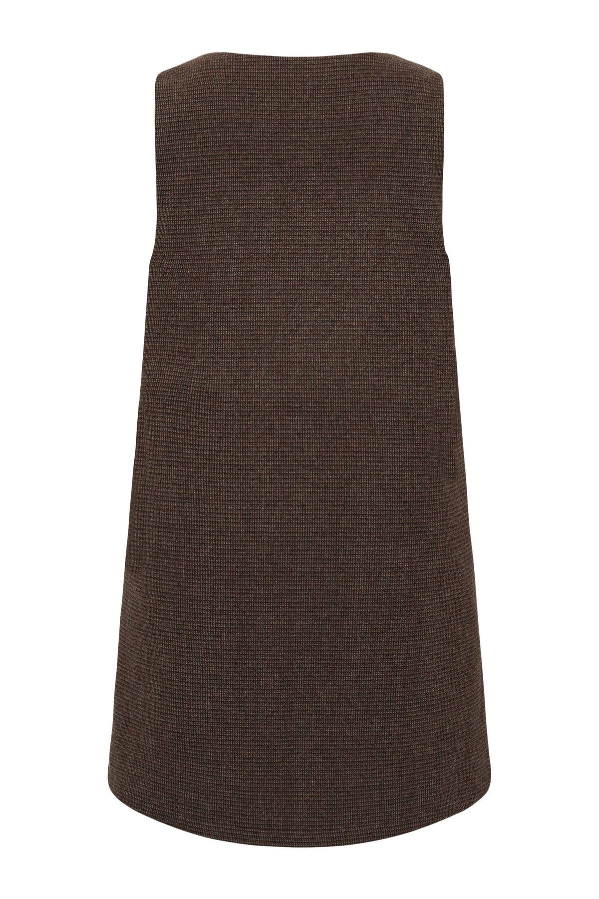 Bruin/roestkleurige jurk van A-View met een geruit patroon. De jurk is mouwloos met een V-hals en heeft een licht A-lijnvormige pasvorm.