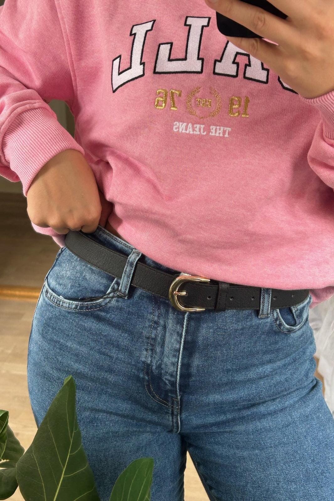 Zwart riem van Anobel Copenhagen in kunstleer met gouden gesp. De riem heeft een normale pasvorm en is gemaakt van een duurzaam materiaal.