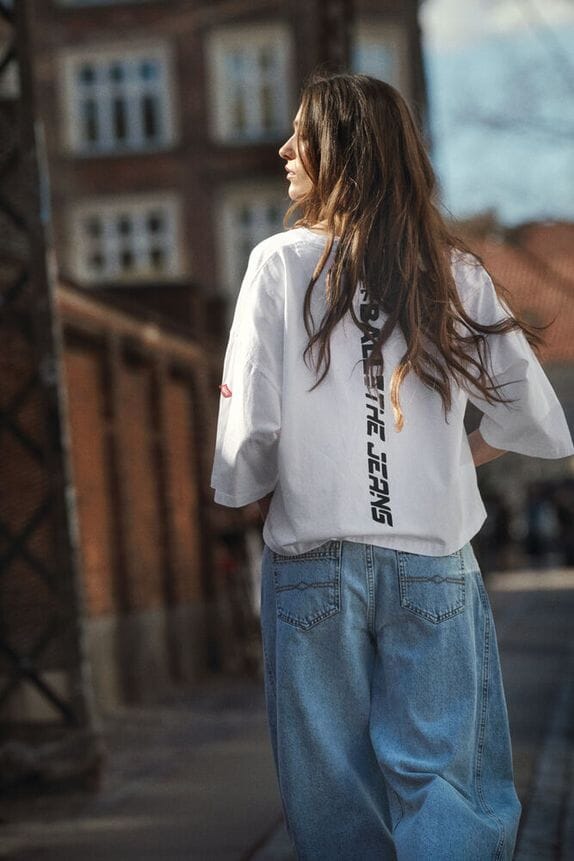 Lichtblauwe jeans van Ball met een gebogen pijpvorm. De jeans heeft een hoge taille en een losse pasvorm.