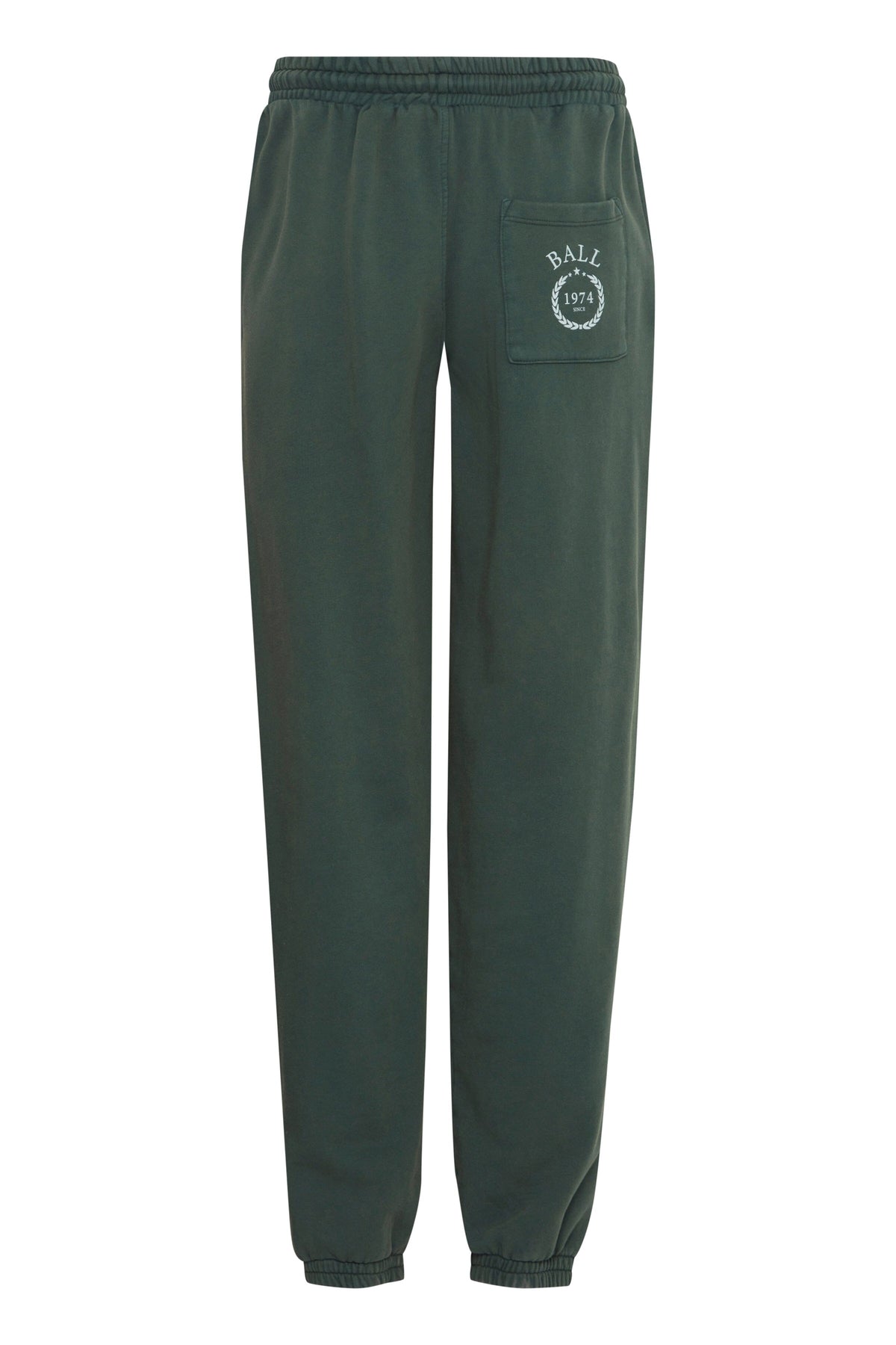 Donkergroene sweatpants van Ball met een relaxte pasvorm. De broek heeft elastiek in de taille met een trekkoord en elastische boorden bij de enkels.