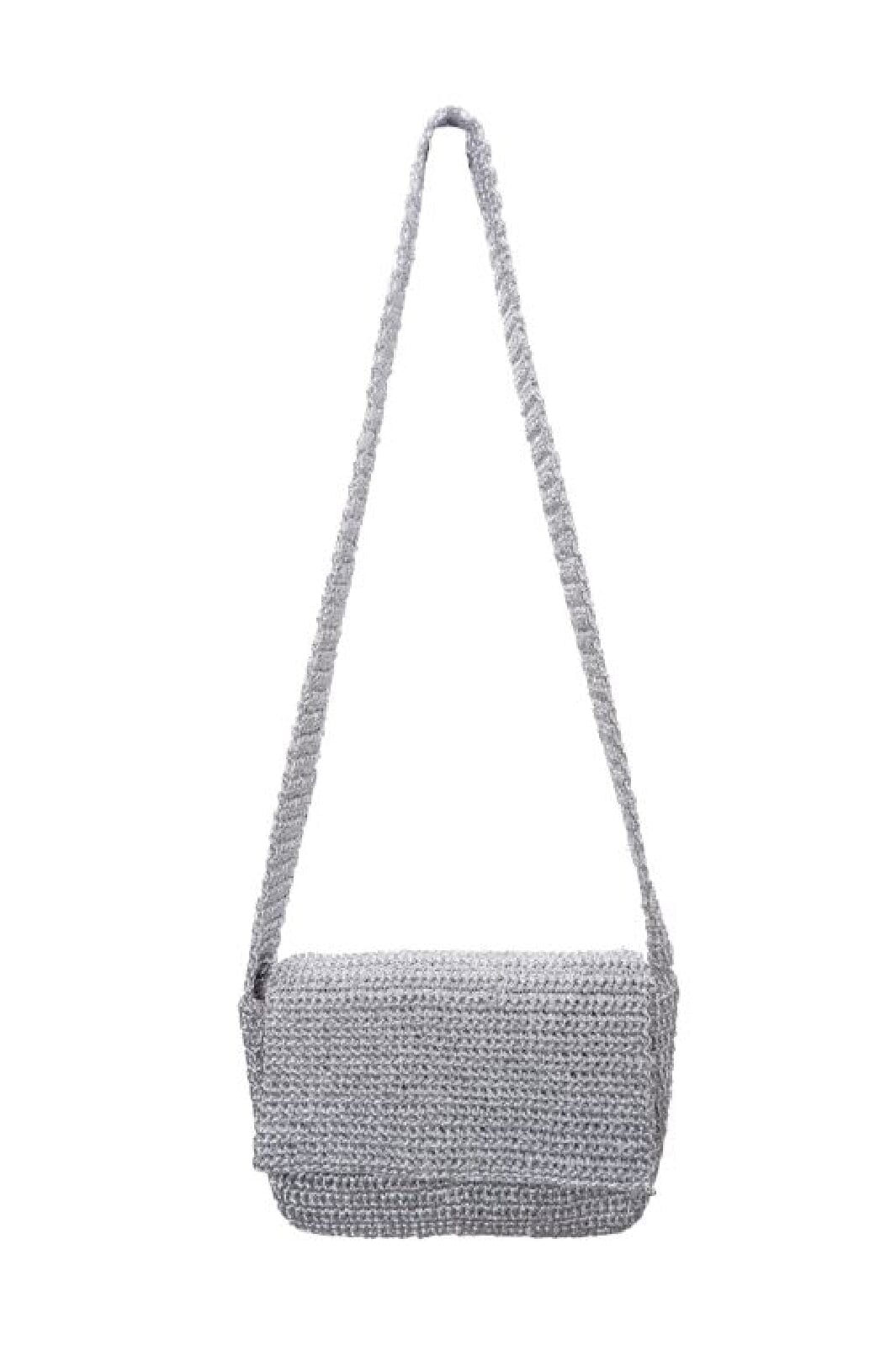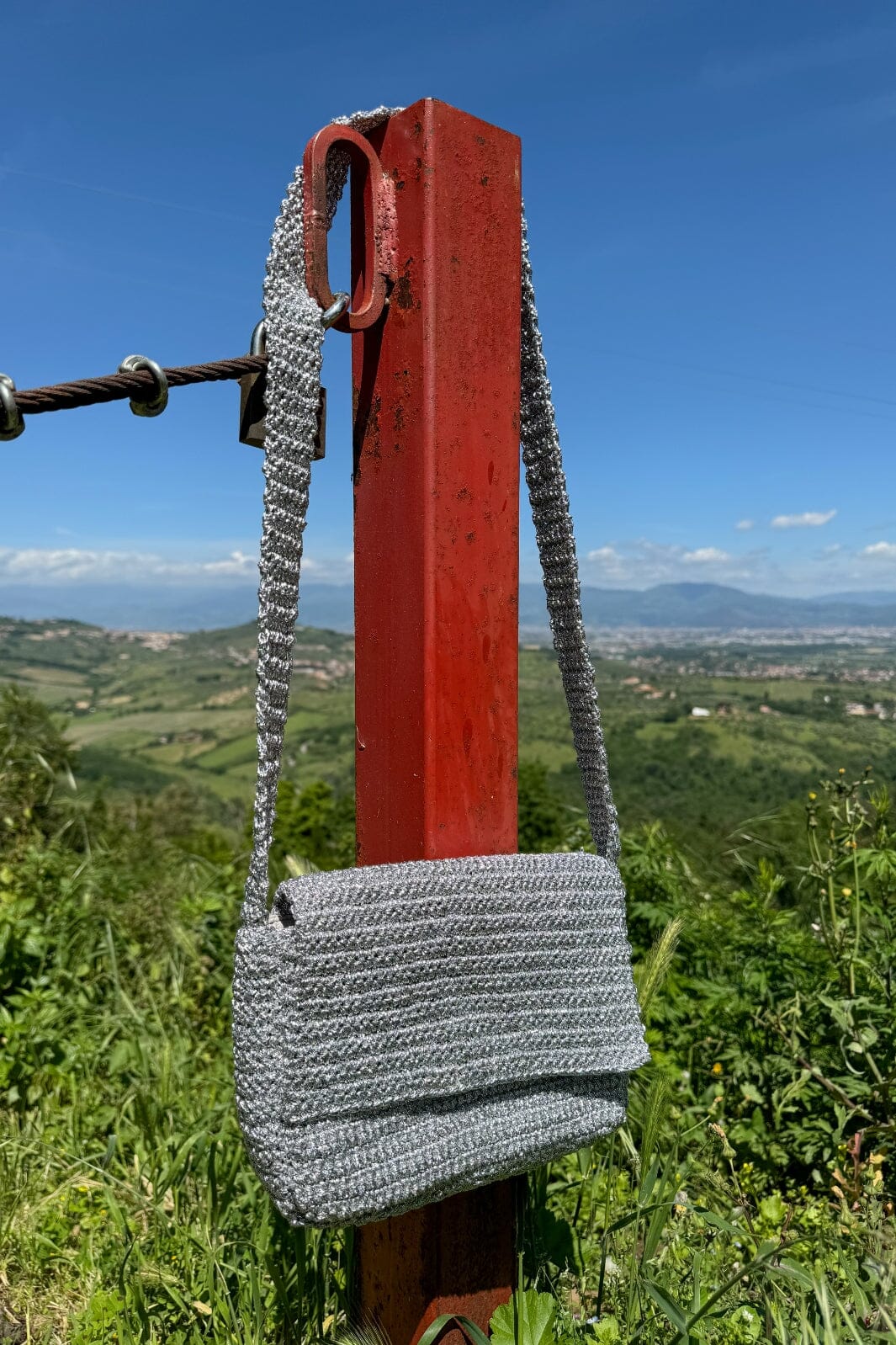 Crossover-tas van Black Colour in zilverkleurige katoen met meerdere praktische vakken. De tas heeft een glanzend oppervlak en een lange schouderriem.