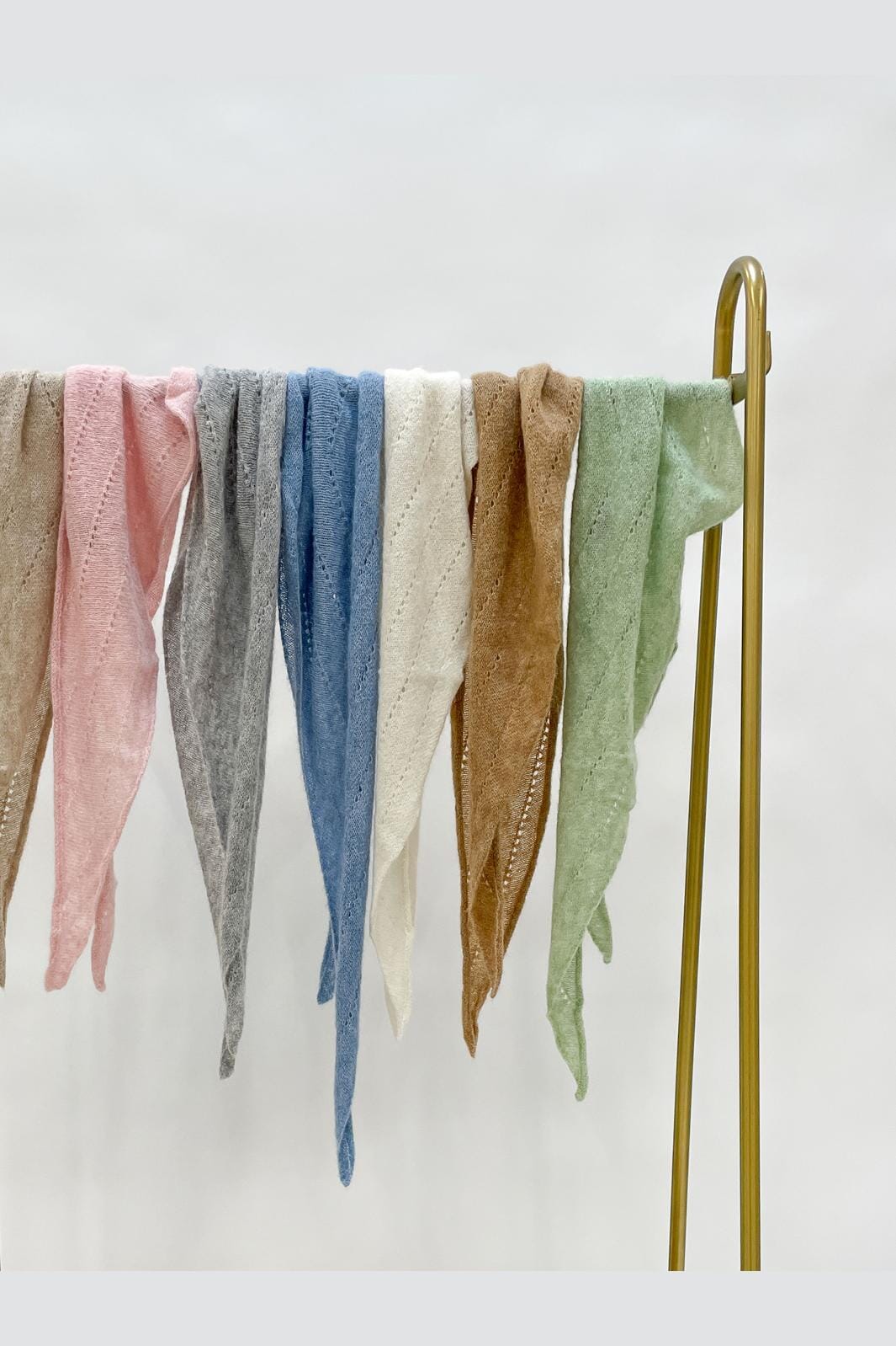 Een gebreide mini-sjaal van Black Colour in een blauwe spijkerkleur. De sjaal heeft een driehoekige vorm en een duidelijke gebreide structuur.