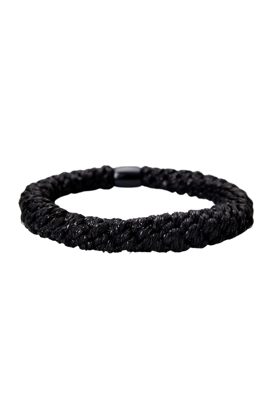 Zwarte haarband van Black Colour met gevlochten ontwerp. De ronde vorm en de stevige constructie maken het elastiek praktisch voor dagelijks gebruik in het haar.