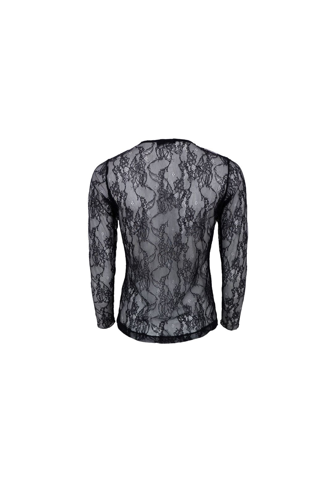 Zwarte kanten blouse van Black Colour met een bloemenpatroon. De blouse heeft een nauwsluitende pasvorm en lange mouwen. De ronde halslijn en de doorlopende kant geven een mooi effect.