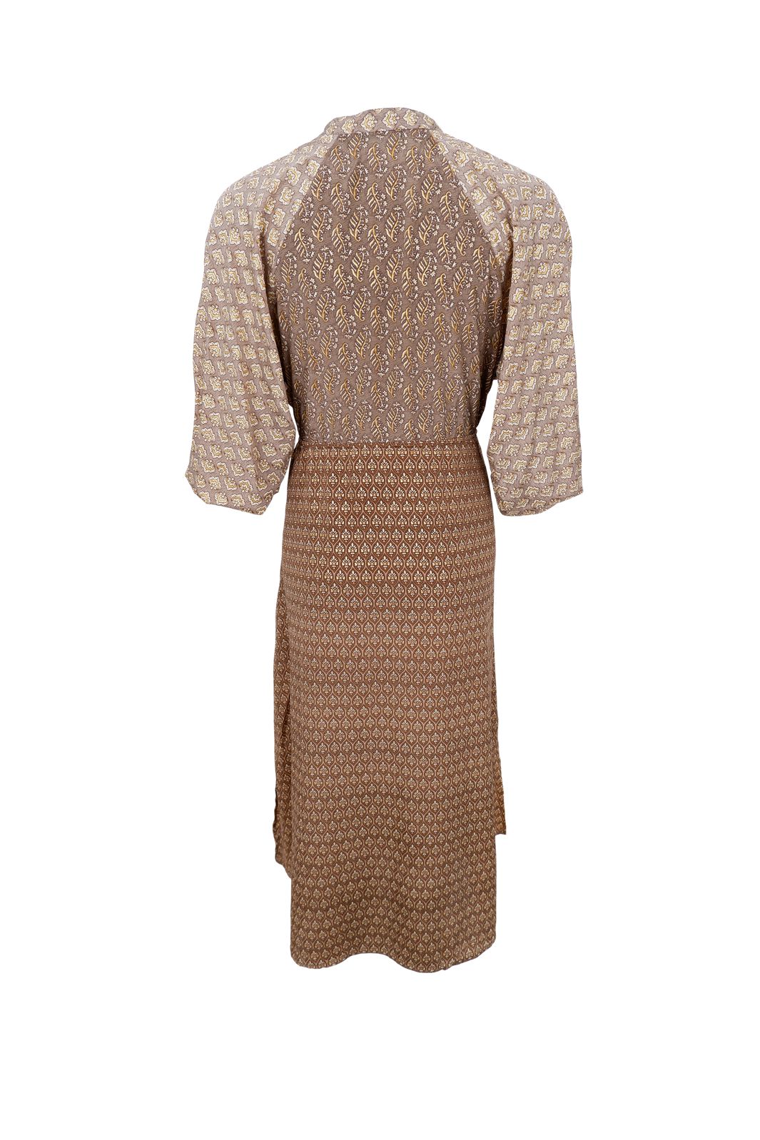 Een bedrukte jurk van Black Colour met raglanmouwen en enkel-lengte. De jurk heeft een losse pasvorm en een strikceintuur in de taille.