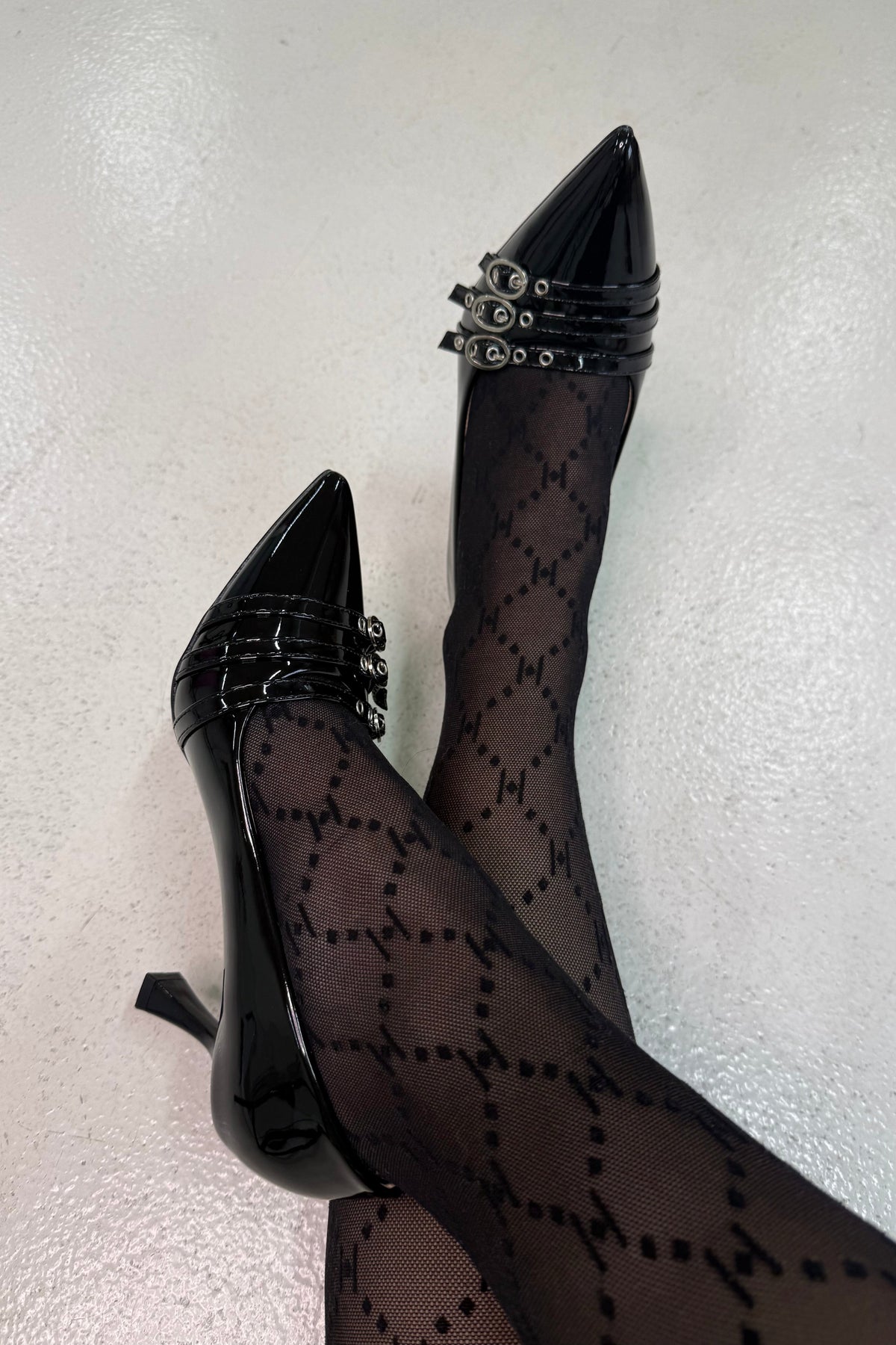 Zwarte stiletto van Bloom met een vierkante neus. Geschikt voor bruiloften, feestjes en andere formele gelegenheden.