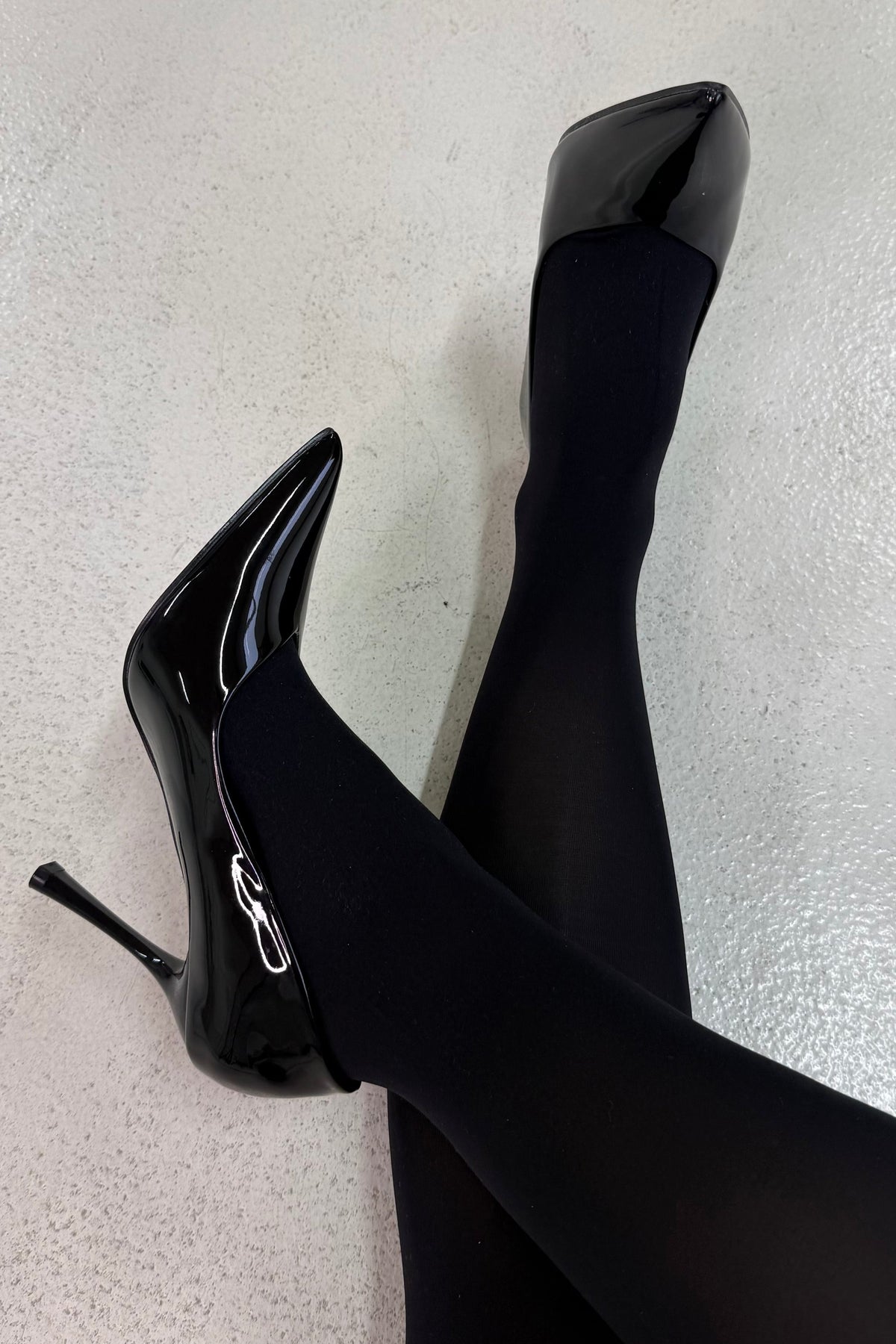 Zwarte stiletto van Bloom, ontworpen voor zowel feestelijke als formele gelegenheden. De schoen heeft een stilettohak en een vierkante neus.