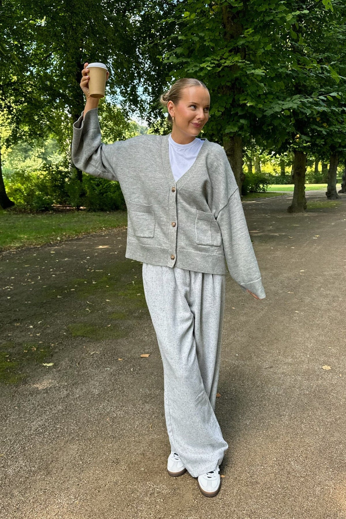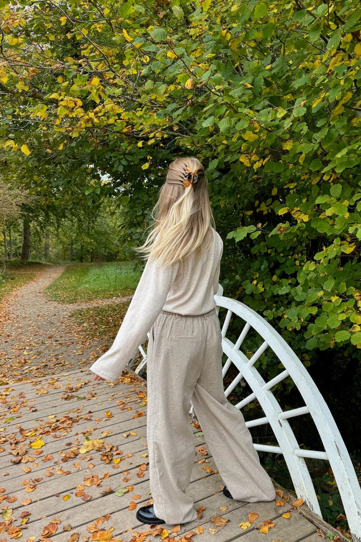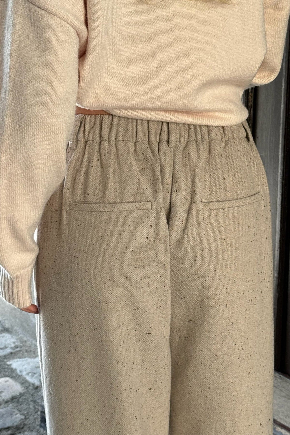 Beige broeken van BYIC in een breed ontwerp met een losse pasvorm. De broeken hebben twee voorzakken en twee nep achterzakken en zijn gemaakt van zacht materiaal in beige melange.