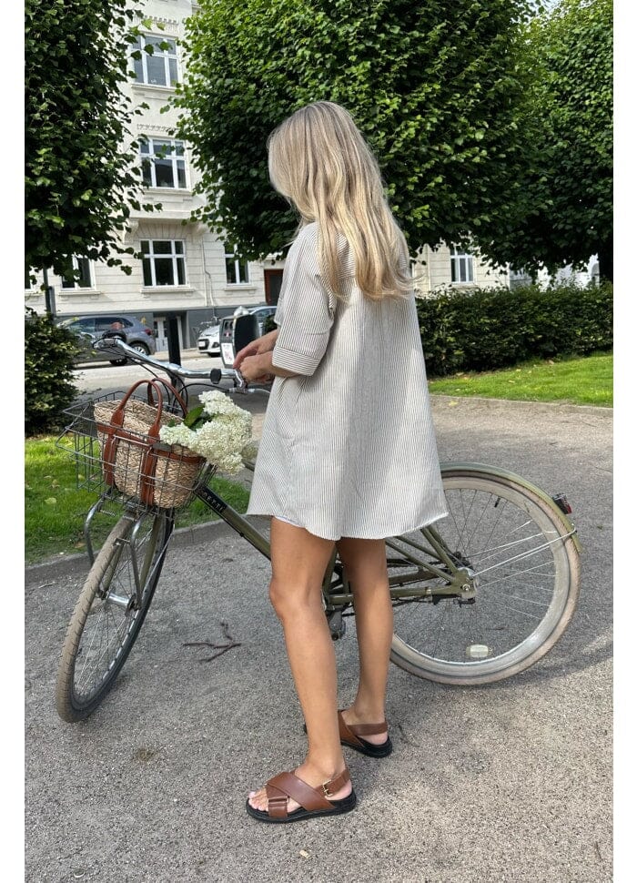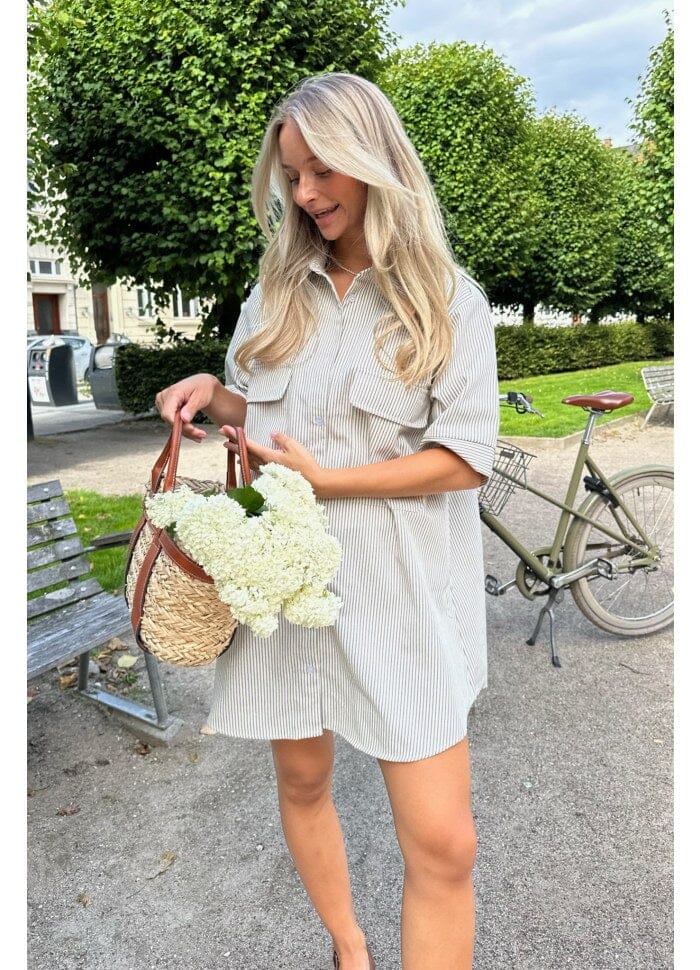 BYICSelda Shirt DressKleur: Dark Beige Woven Stripe