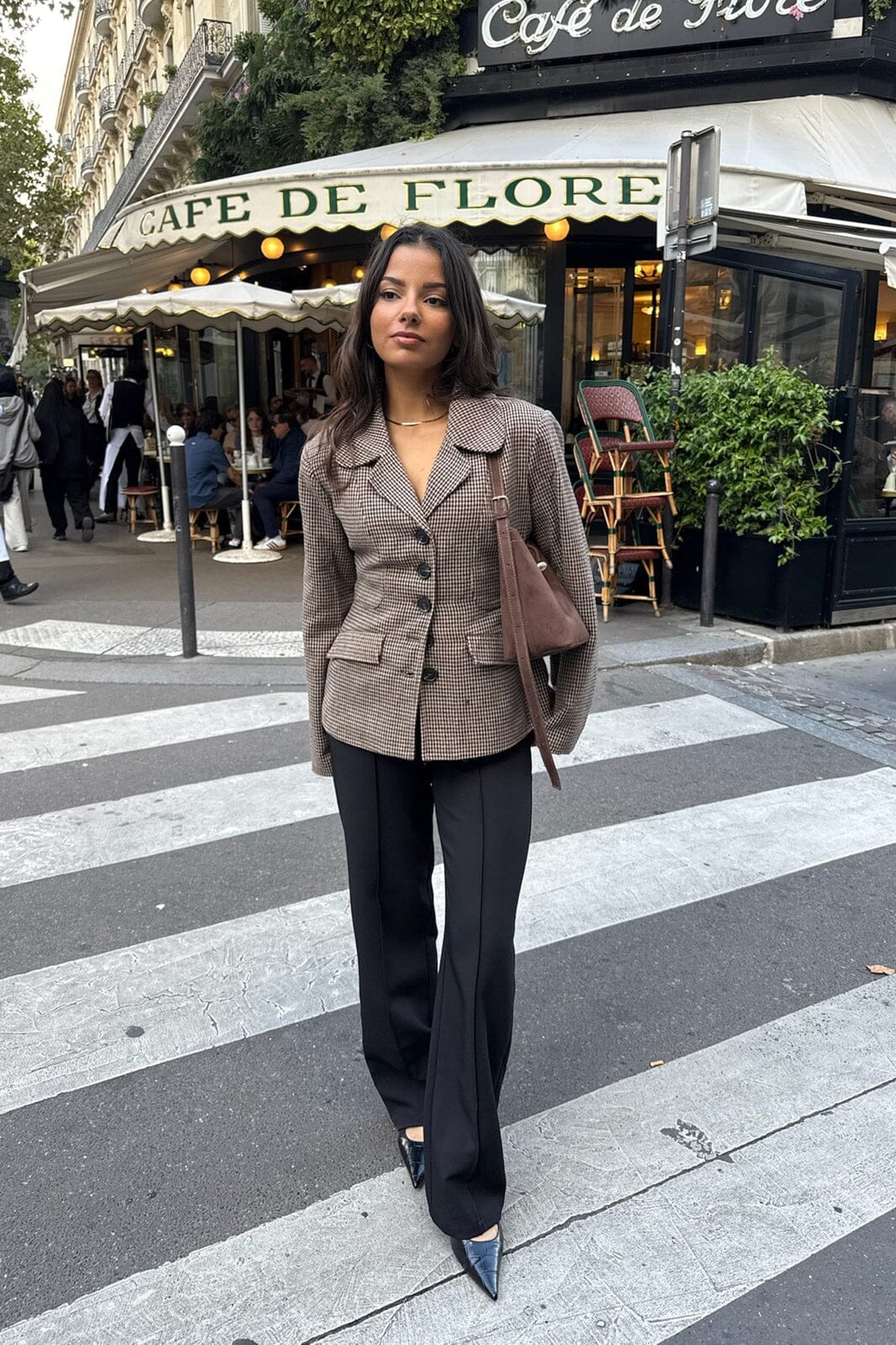 Zwarte broek van BYIC met een persplooi aan de voorkant. De broek heeft een hoge taille met riemlussen en zakken zowel voor als achter. De decoratieve stiksels geven de broek een afgewerkte uitstraling.
