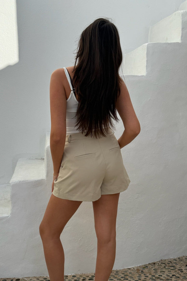 Beige shorts van BYIC met een normale pasvorm. De shorts hebben decoratieve stiksels en binddetails die een schone en eenvoudige uitstraling geven.