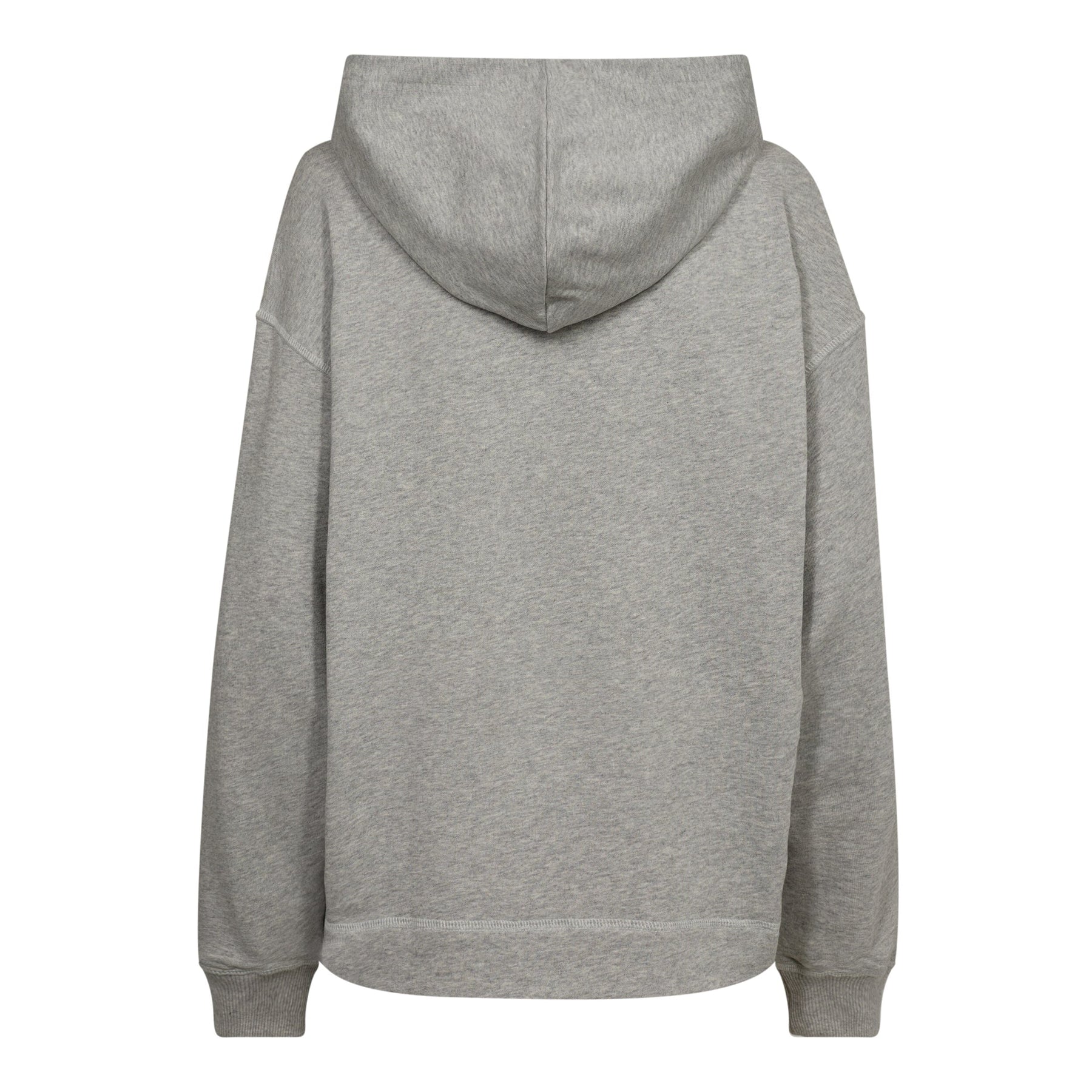 Grijze melange hoodie van Co'Couture in biologisch katoen. Het heeft een geborduurd detail op de borst en een ruime capuchon. De sweatshirt heeft een relaxte pasvorm met lange mouwen.