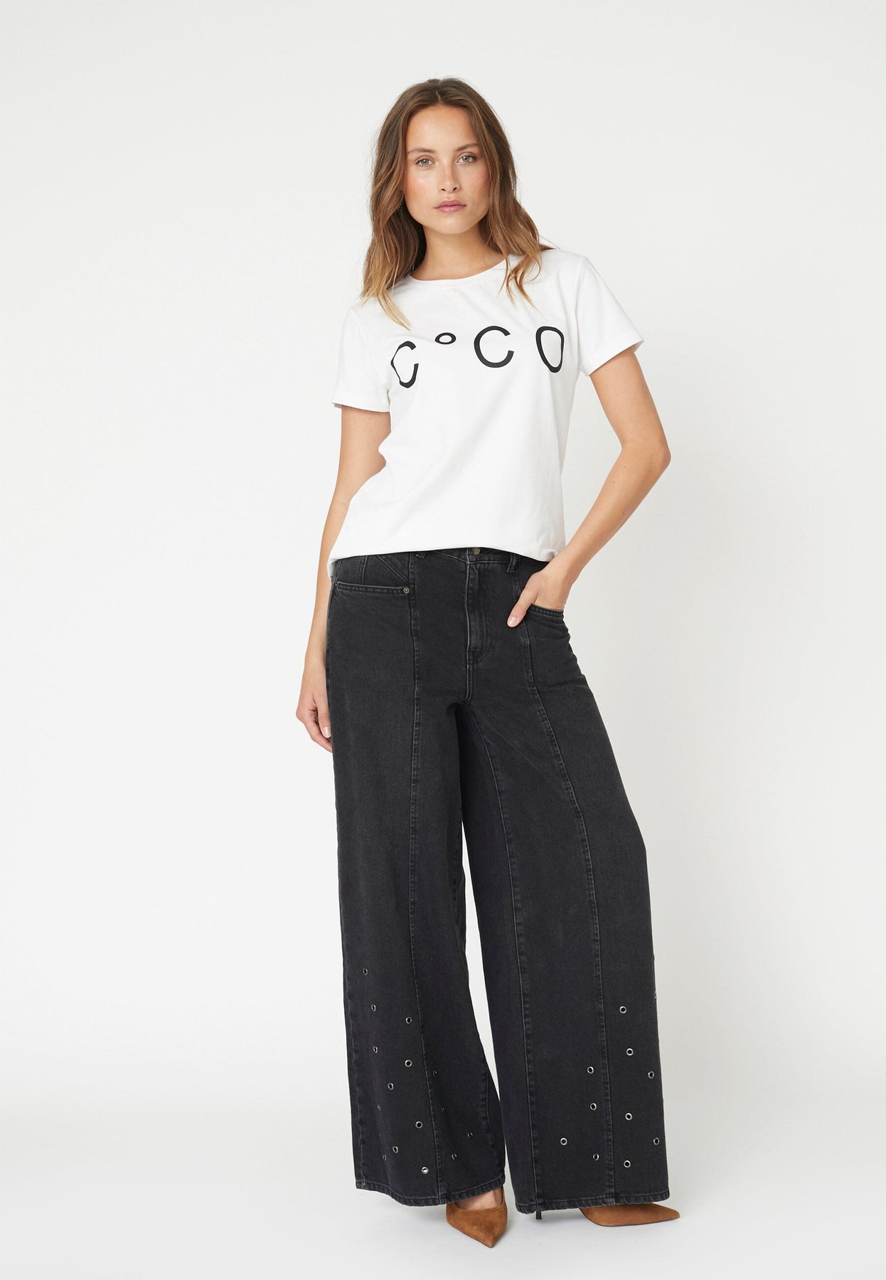 Wit T-shirt van Co´Couture met zwarte print op de voorkant. Het T-shirt is gemaakt van 95% katoen en 5% elastaan.