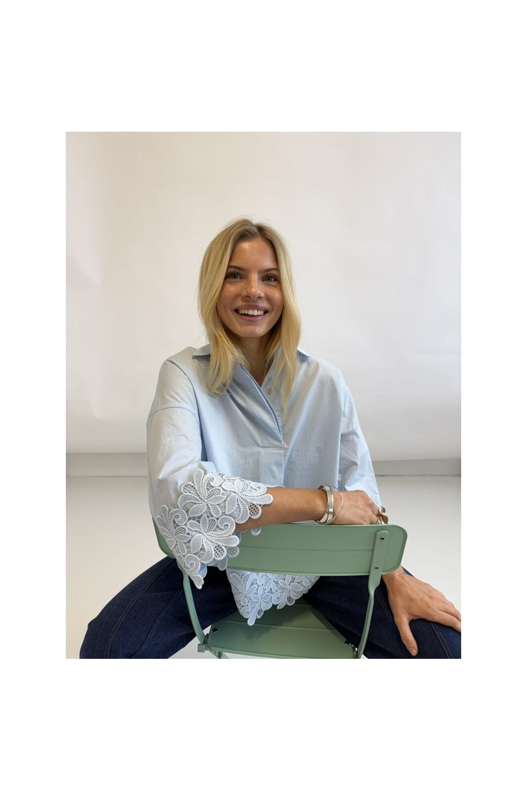 Lichtblouse overhemd van Continue, gemaakt van katoen met geborduurde details en kant. Het overhemd heeft een losse pasvorm en driekwartmouwen.