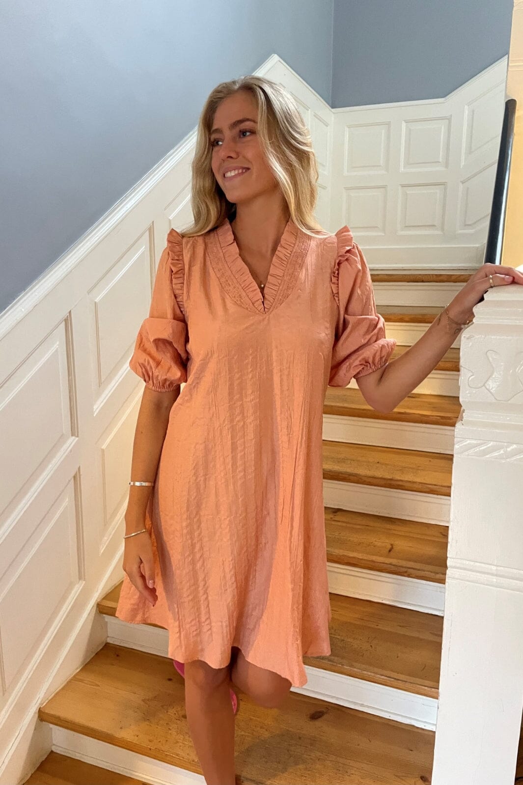 Met zijn abrikooskleurige tint geeft het een frisse touch aan je garderobe en is het ideaal voor zowel alledaags gebruik als speciale momenten.