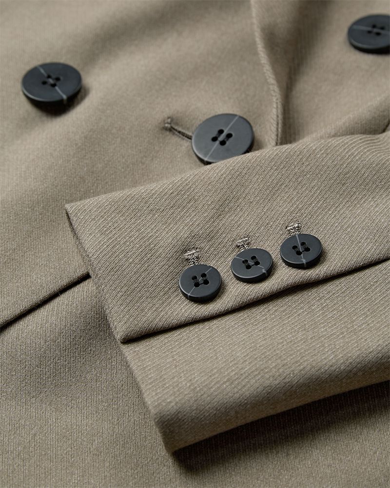 Blazer van Copenhagen Muse in een beige en groen gemêleerde kleur. De blazer heeft een klassieke smokinglook met V-hals en reverskraag en decoratieve stiksels.