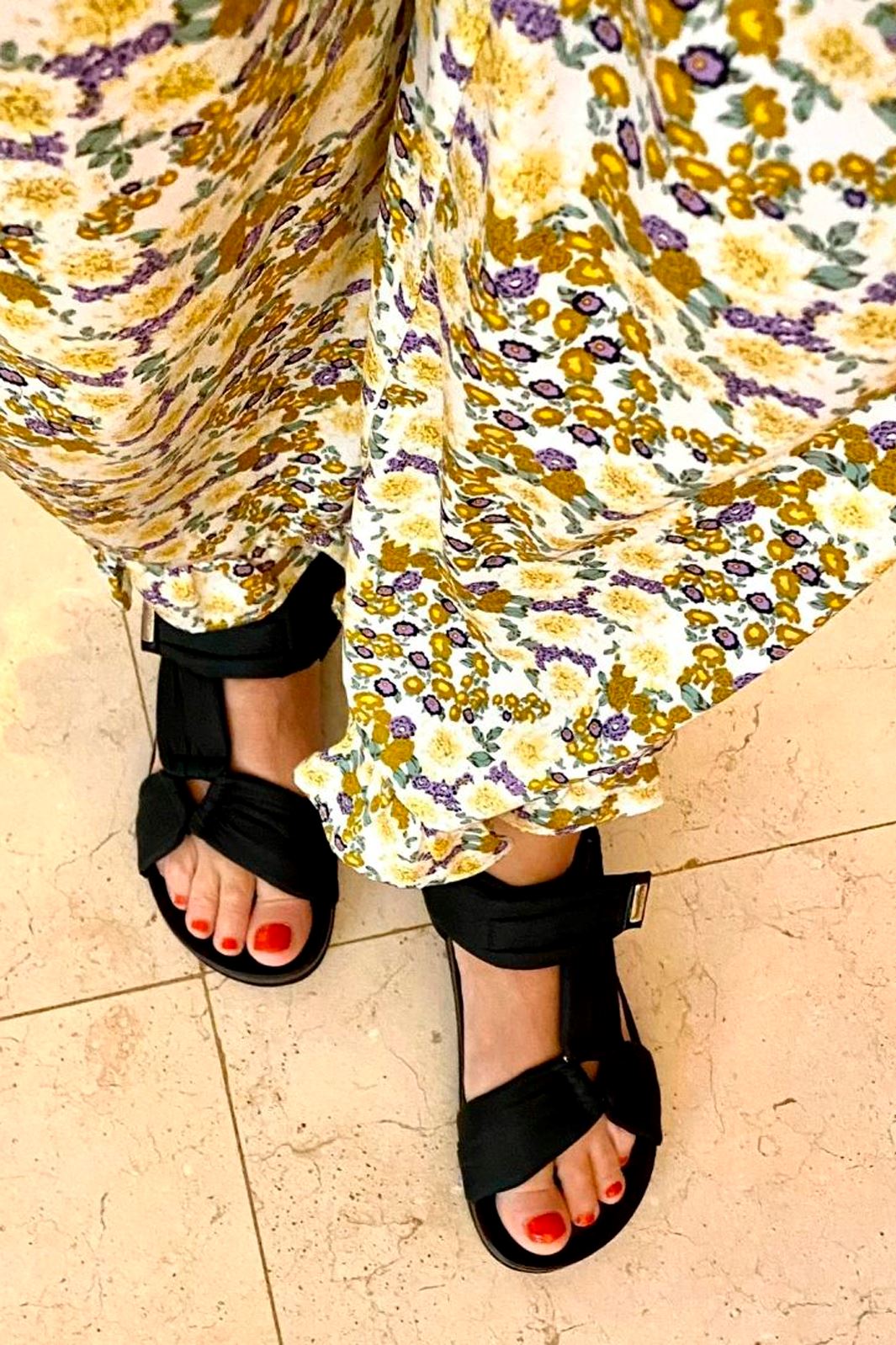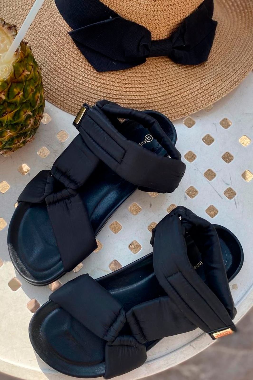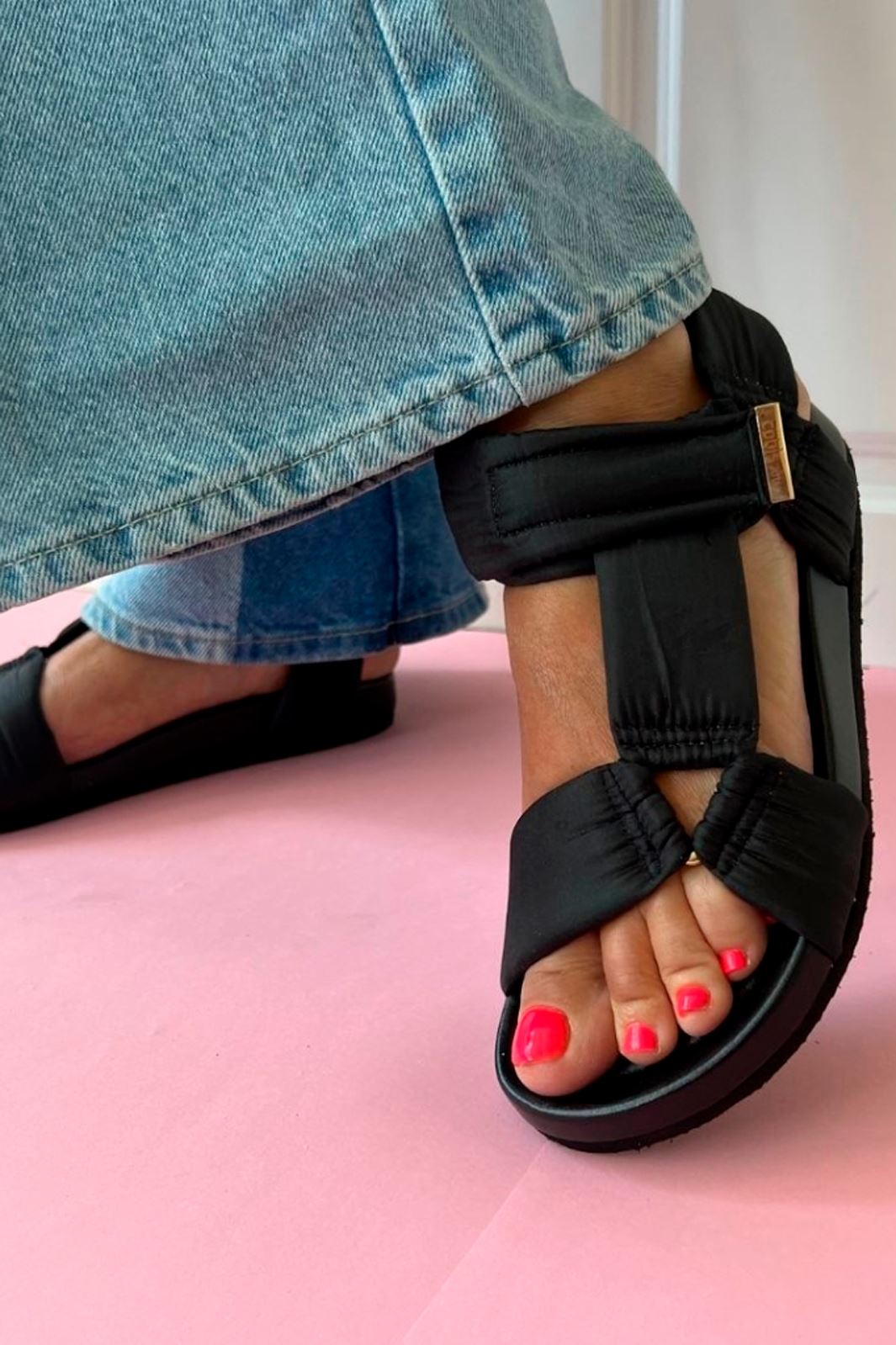 Zwarte sandaal van Copenhagen Shoes met gevoerde banden en schokabsorberende zool. De sandaal heeft klittenbandsluiting en is gemaakt van leer dat zich naar de voet vormt.