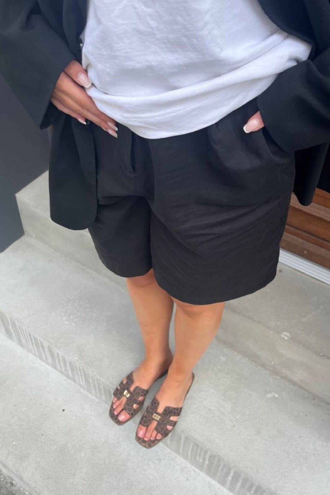 Sandalen van Copenhagen Shoes van suède met luipaardprint. De sandalen hebben een platte zool en een goudkleurig detail op het bandje.