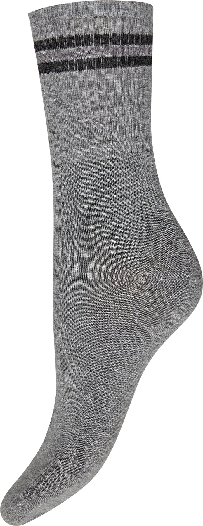 Enkelsokken van Decoy in een verpakking van drie paar. De sokken zijn er in grijs, beige en wit met twee horizontale strepen langs de rand.