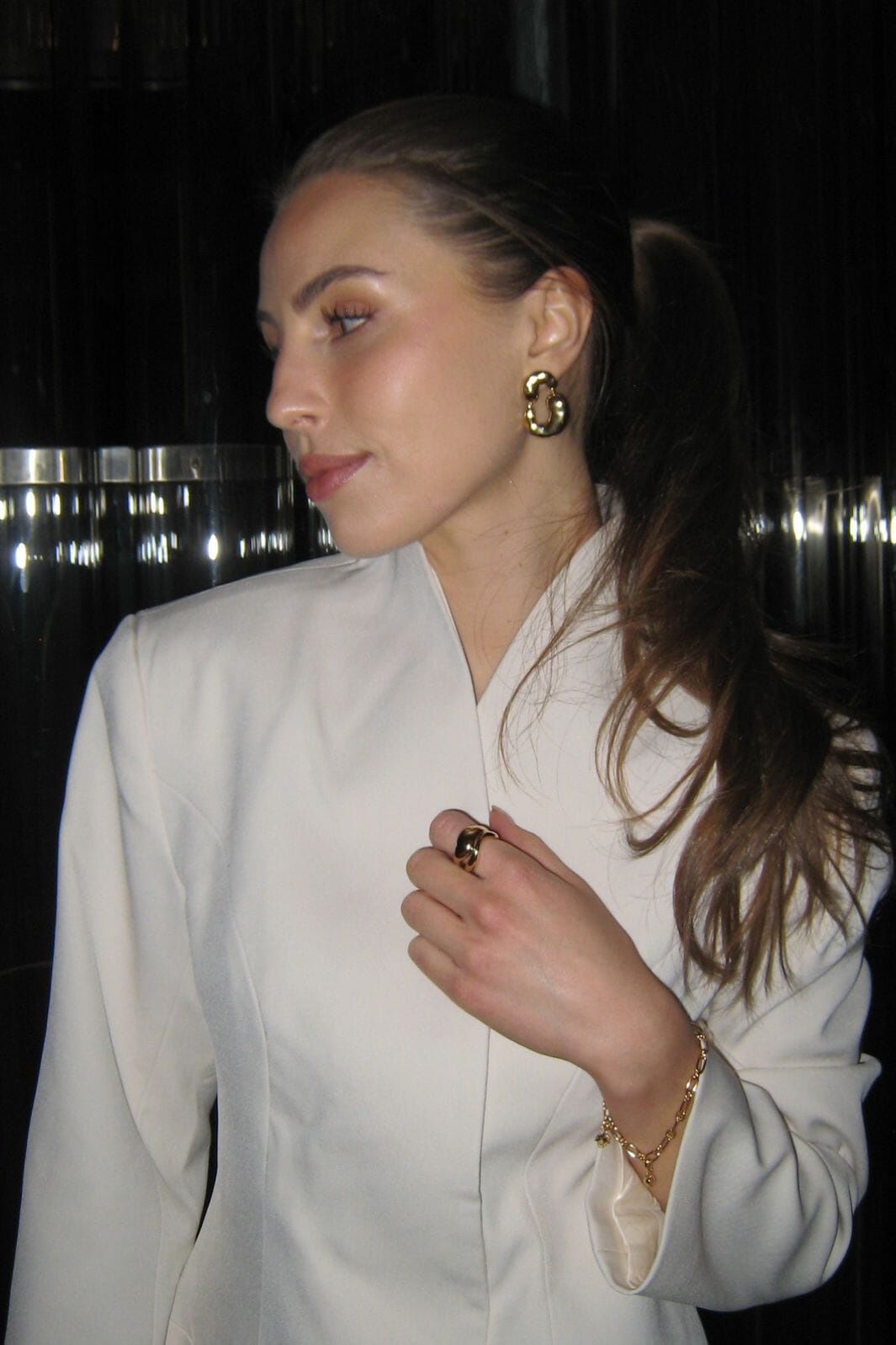 Oorbellen van Enamel Copenhagen met een golvende vorm. Ze hebben een glanzend oppervlak en zijn gemaakt van verguld zilver. De organische vorm geeft het sieraad een zachte uitstraling.