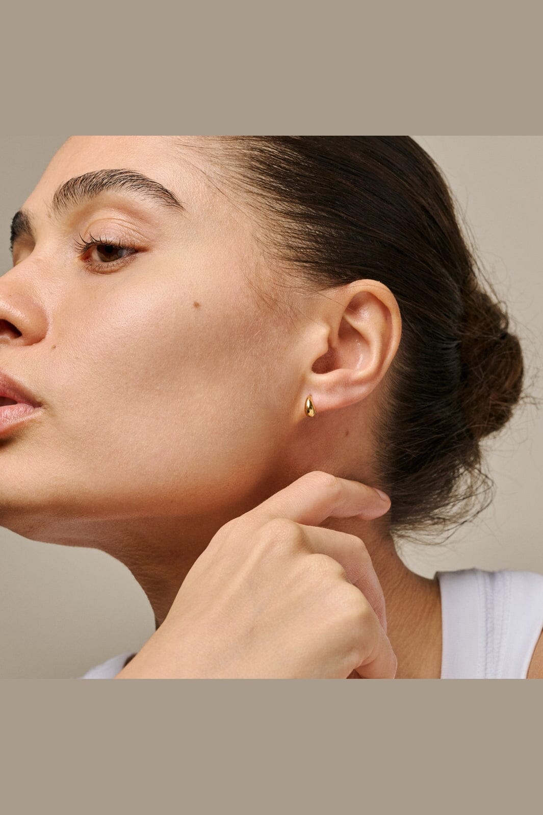 Vergulde oorstekers van Enamel Copenhagen met een druppelvormige silhouet en glanzend oppervlak. Het sieraad is gemaakt van gerecycled sterlingzilver met een 18-karaats vergulding.