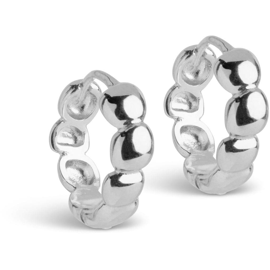 Zilverkleurige hoops van Enamel Copenhagen, gemaakt van gerecycled sterlingzilver. De oorbellen hebben gladde, afgeronde segmenten met een gepolijste afwerking.