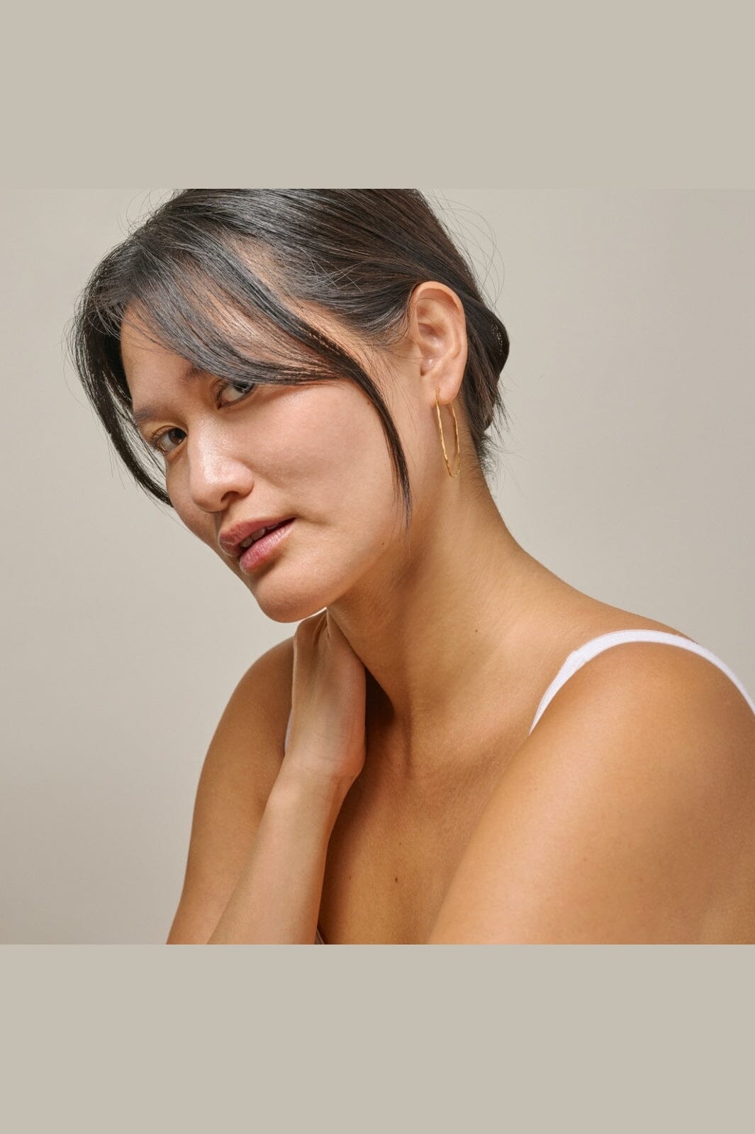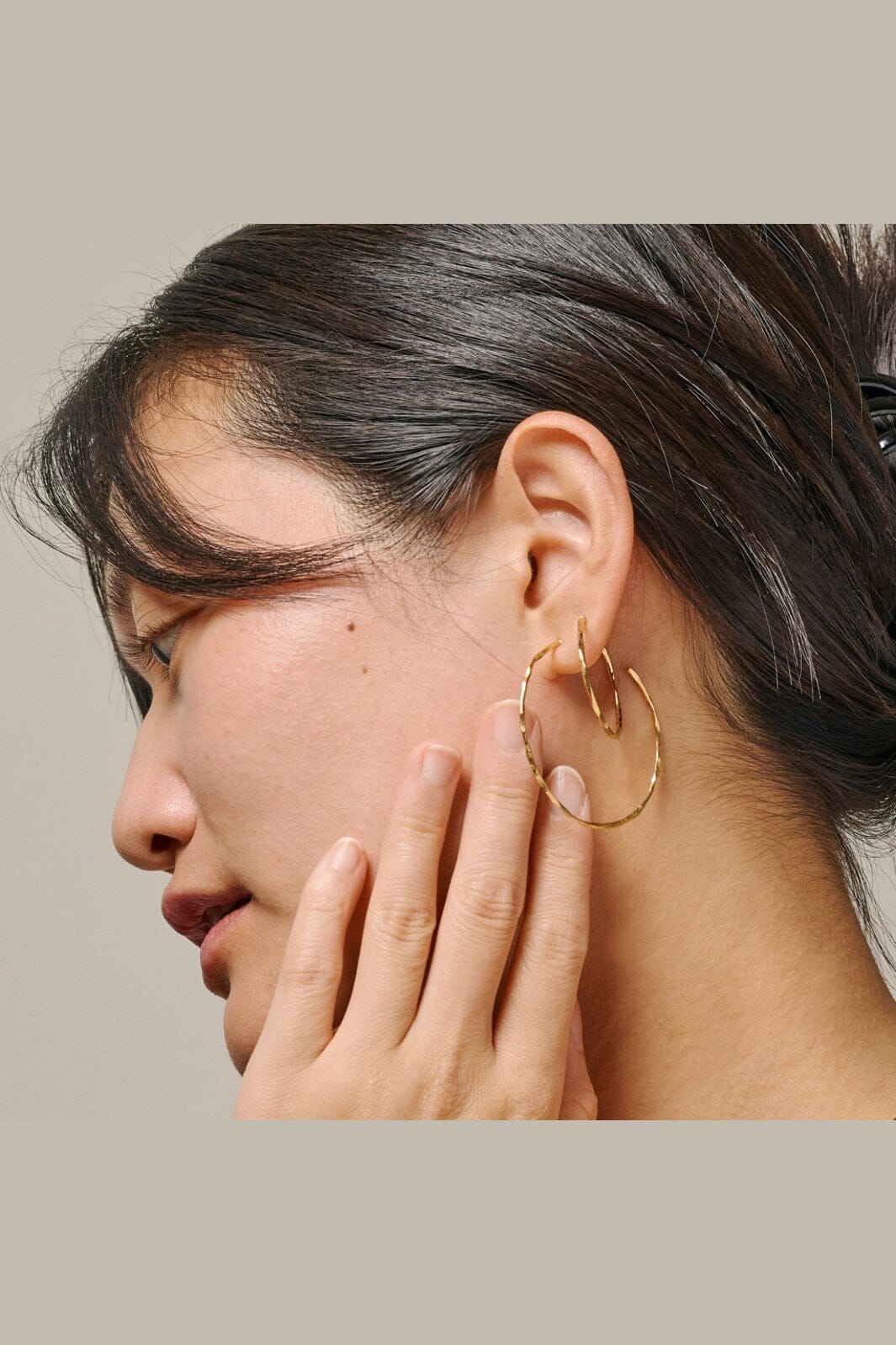 Grote hoops van Enamel Copenhagen, gemaakt van 18K verguld gerecycled sterlingzilver met een gehamerde goudkleurige afwerking.