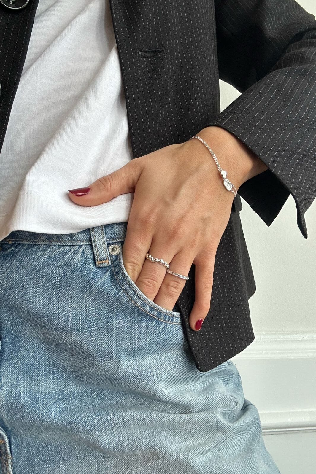 Ring van Enamel Copenhagen, gemaakt van gerecycled sterlingzilver. De ring heeft een ontwerp met bolvormige segmenten in een zilverkleurige tint.