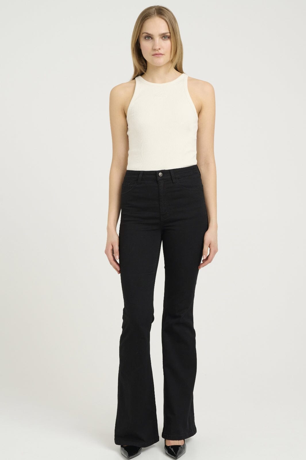 Mouwloze tanktop van Gestuz in White Onyx. Een geribde top met DG-logo geborduurd op de voorkant en ronde halslijn.