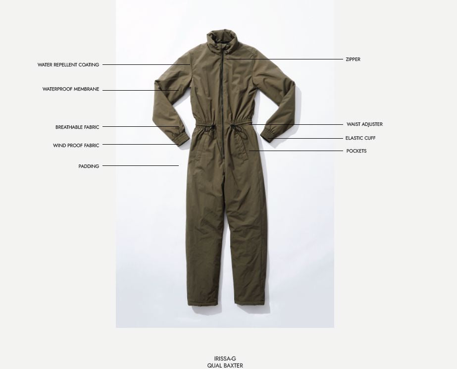 De overall heeft praktische details zoals een ritssluiting en verstelbare bandjes, waardoor hij makkelijk aan te passen is.