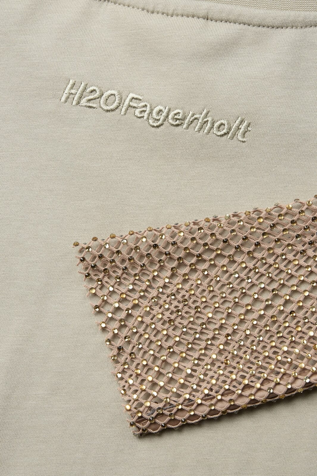 Lichtgrijze t-shirt met lange mouwen en rhinestone-decoraties. De borduursels op de rug en de glinsterende mouwen geven de t-shirt een feestelijke uitstraling, terwijl de losse pasvorm zorgt voor goede bewegingsvrijheid.