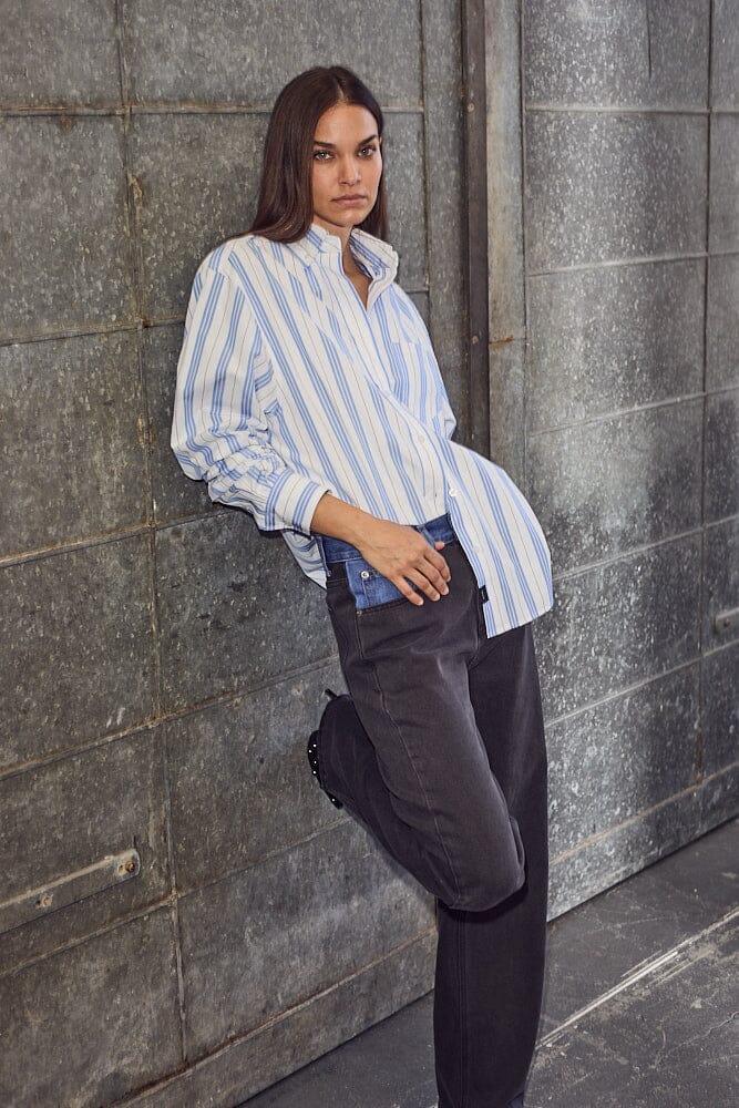 Haute L'Amitié Button Down Stripe Shirt HL10257 Kleur: White Blue Stripe