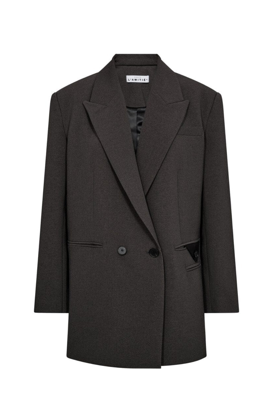 Oversized blazer van Haute L'Amitié in donkergrijs. De blazer heeft een double-breasted voorkant met twee zichtbare knopen en brede revers.