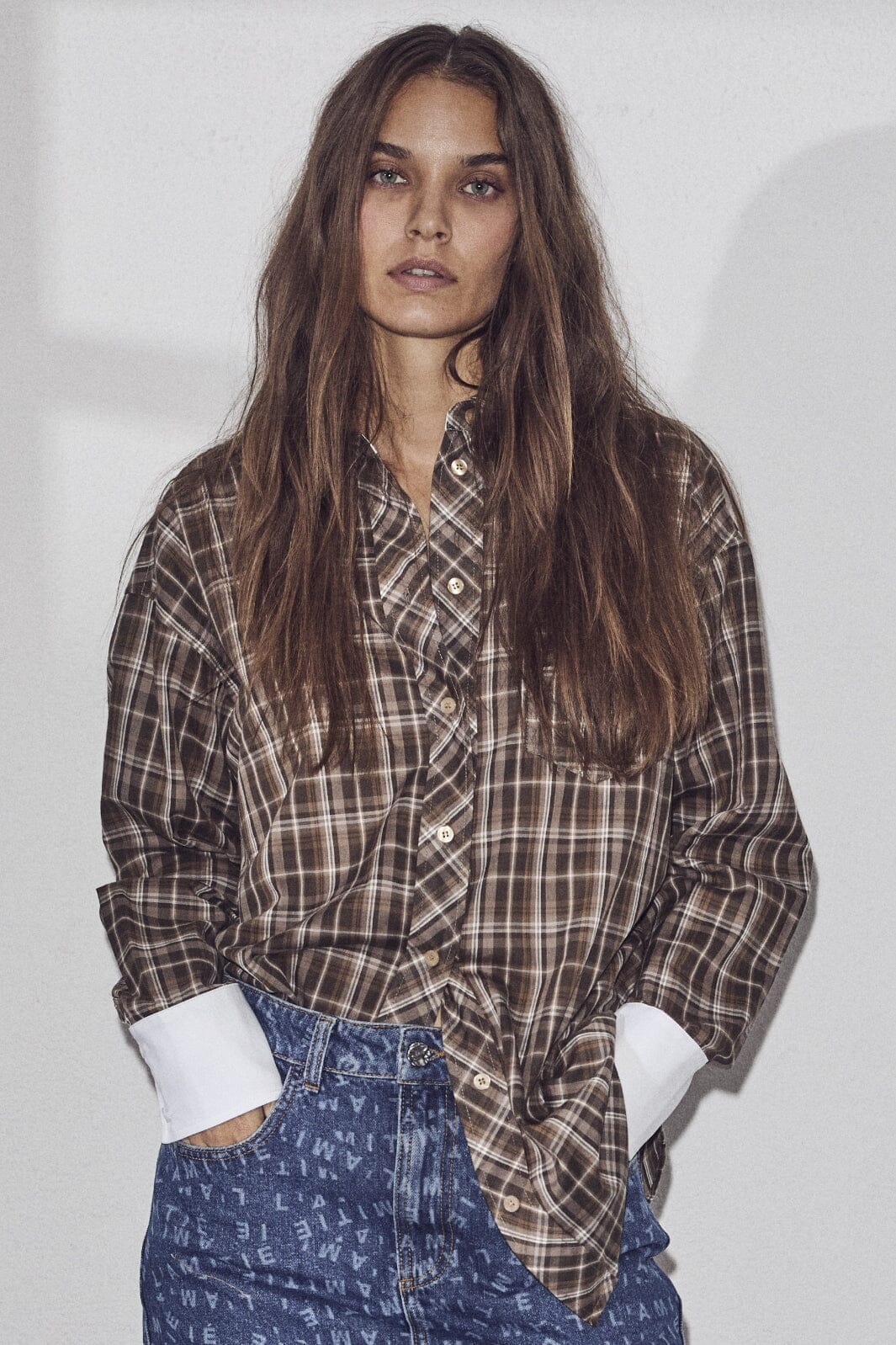 Geruite shirt van Haute L'Amitié in bruin en beige. Het shirt heeft een losse pasvorm en witte manchetten die een rustieke en casual uitstraling geven.