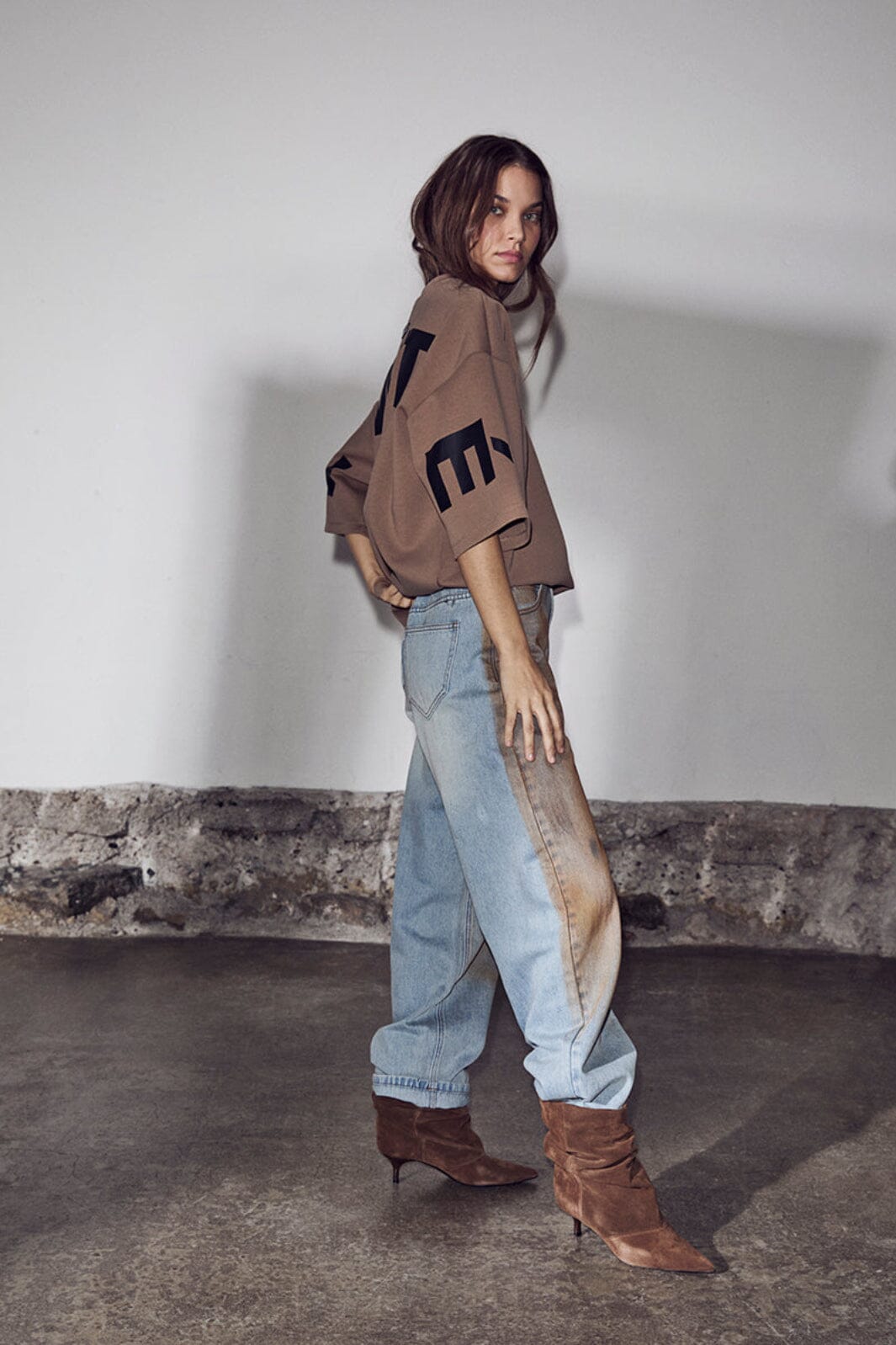 Haute L'Amitié Hlamaxi Split Ss Logo Sweat HL10461 Kleur: Walnut