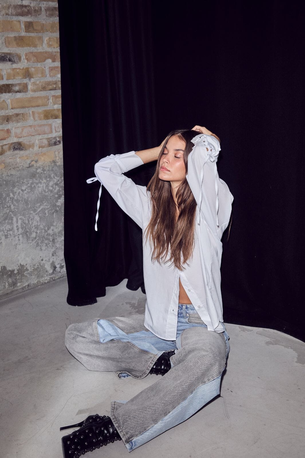 Haute L'Amitié Hlatwo-Tone Patch Jeans HL10377 Kleur: Blue/Grey Mix