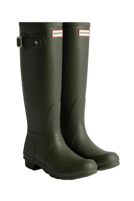 Cowboylaarzen van Hunter, gemaakt van 100% rubber in het zwart. De laarzen hebben een blokhak en twee praktische lussen voor eenvoudig aan- en uittrekken.