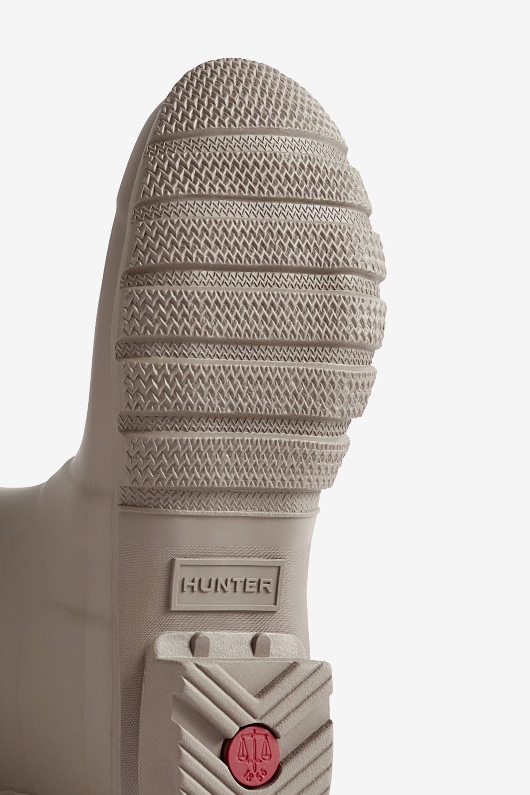 Korte laarzen van Hunter in de kleur Kettle, een neutrale bruin-beige tint. De laarzen zijn gemaakt van 100% rubber met een blokhak.