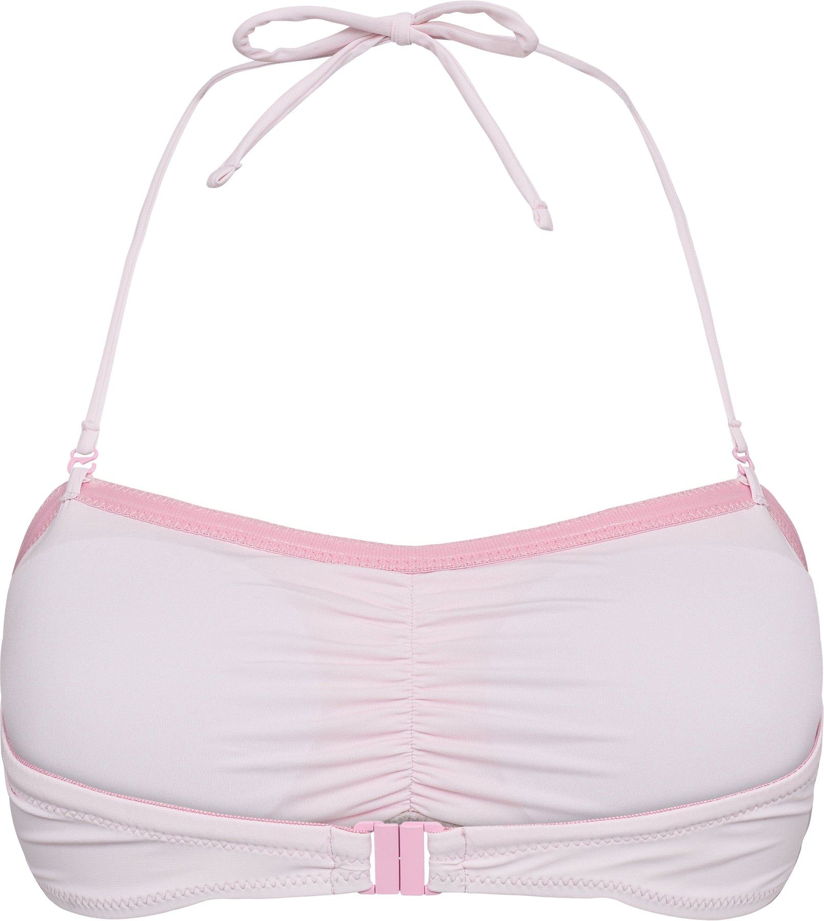 Roze bandeau-bikinibovenstuk van Hype The Detail met halternek-veter en plooidetails. De bikini heeft decoratieve stiksels en een effen ontwerp.