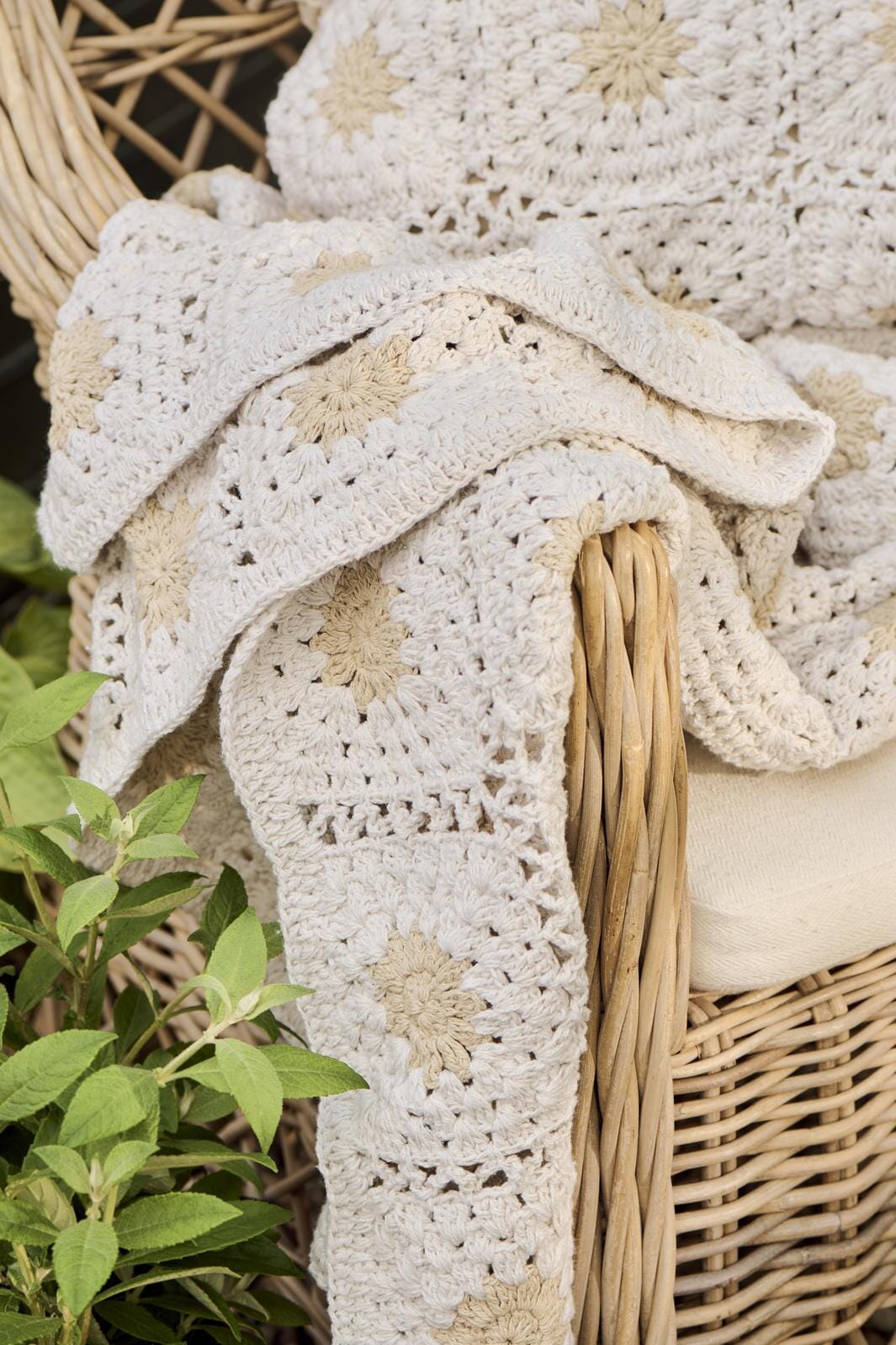 Ib Laursen Plaid hæklet creme m/naturfarvede blomster Kleur: 100% bomuld