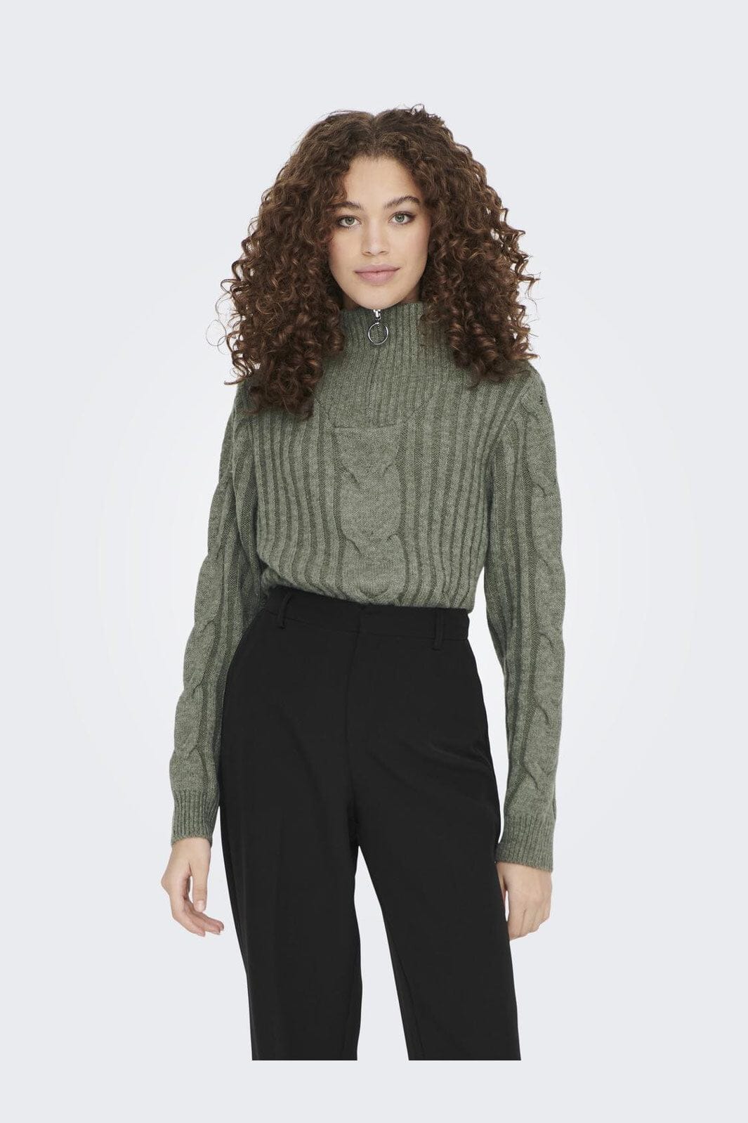 JDY Jdyandrea L/S Zip Cable Pullove Knt Kleur: 4086987 Kalamata Melange