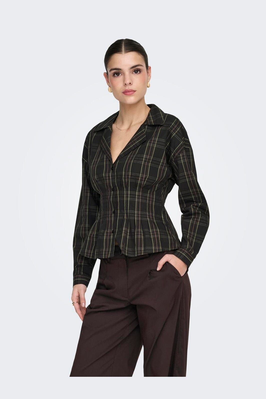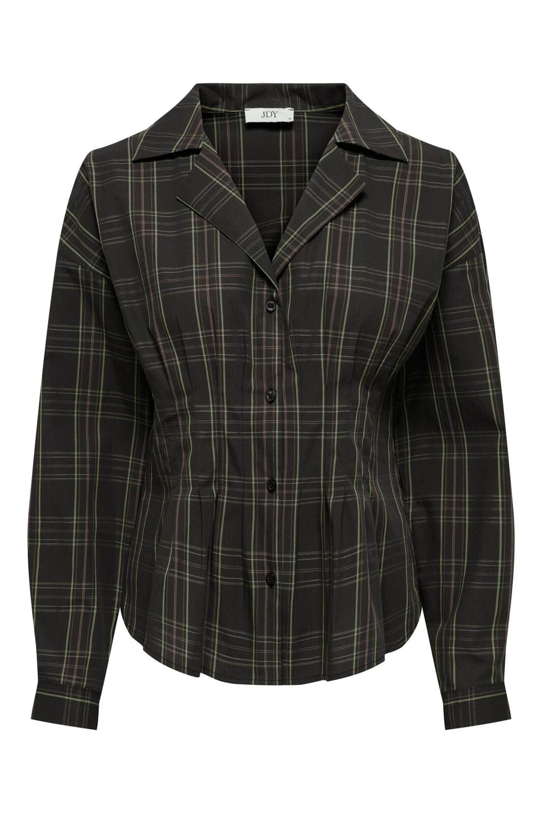Geruit overhemd van JDY in zwart met groene en rode ruiten. Het overhemd is gemaakt van biologisch katoen en heeft een getailleerde pasvorm.