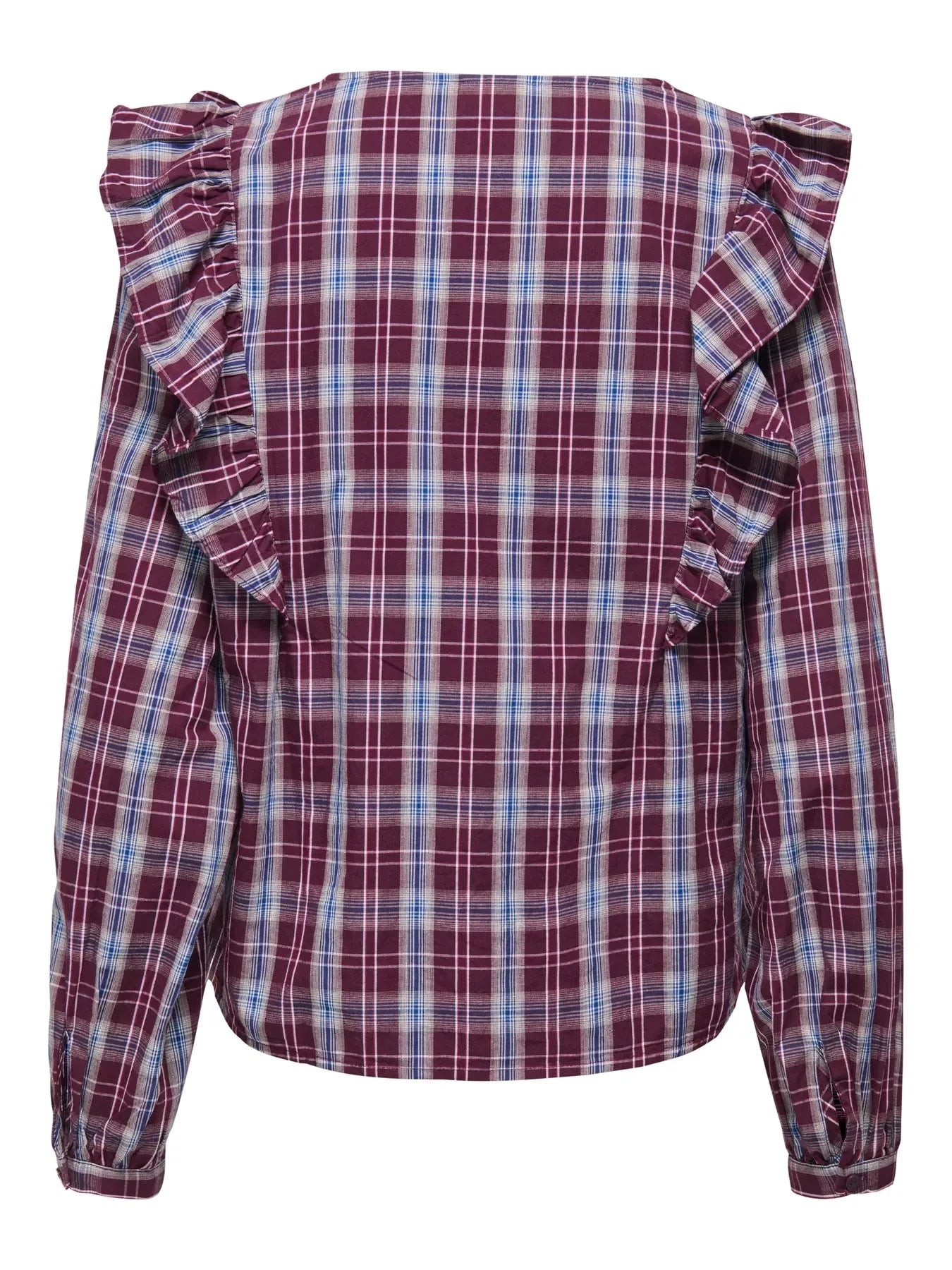 JDY Jdydolly L/S Check Top Kleur: 4933633 Fig Black & Total Eclipse
