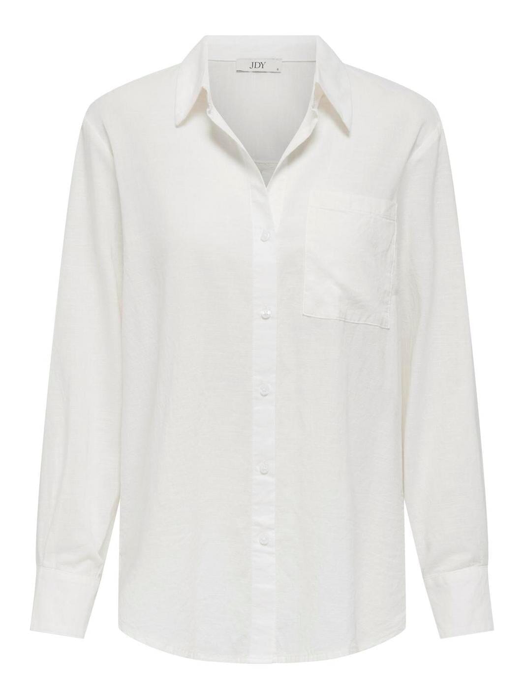 Witte blouse van JDY van katoenmateriaal. De blouse heeft volumineuze mouwen met knoopsluiting bij de manchetten en een klassieke blousekraag. Een borstzak aan de voorkant biedt praktische opbergruimte.
