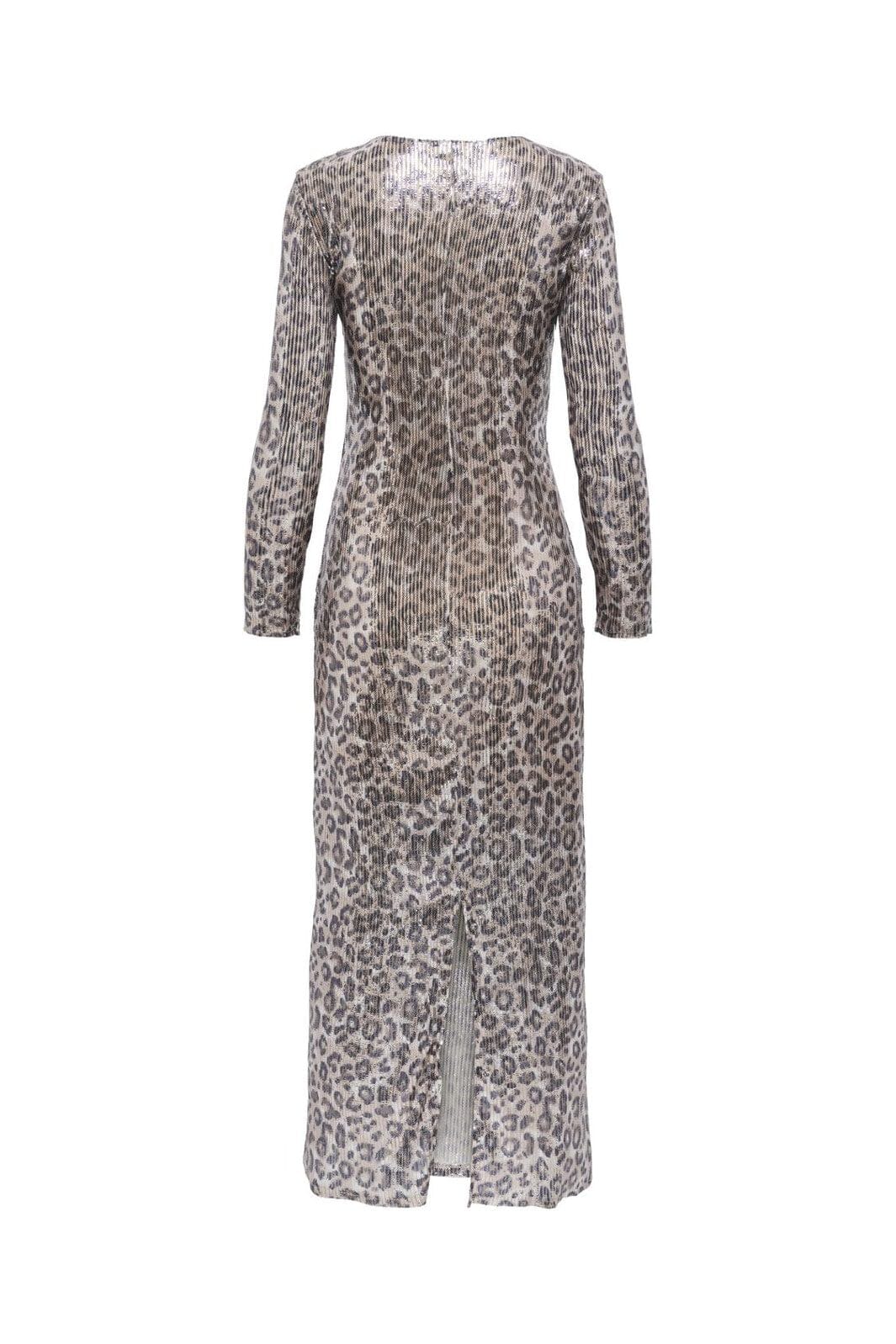 JDY Jdyleona Sequin L/S Long Dress Kleur: 4840296 Brown Rice Leo
