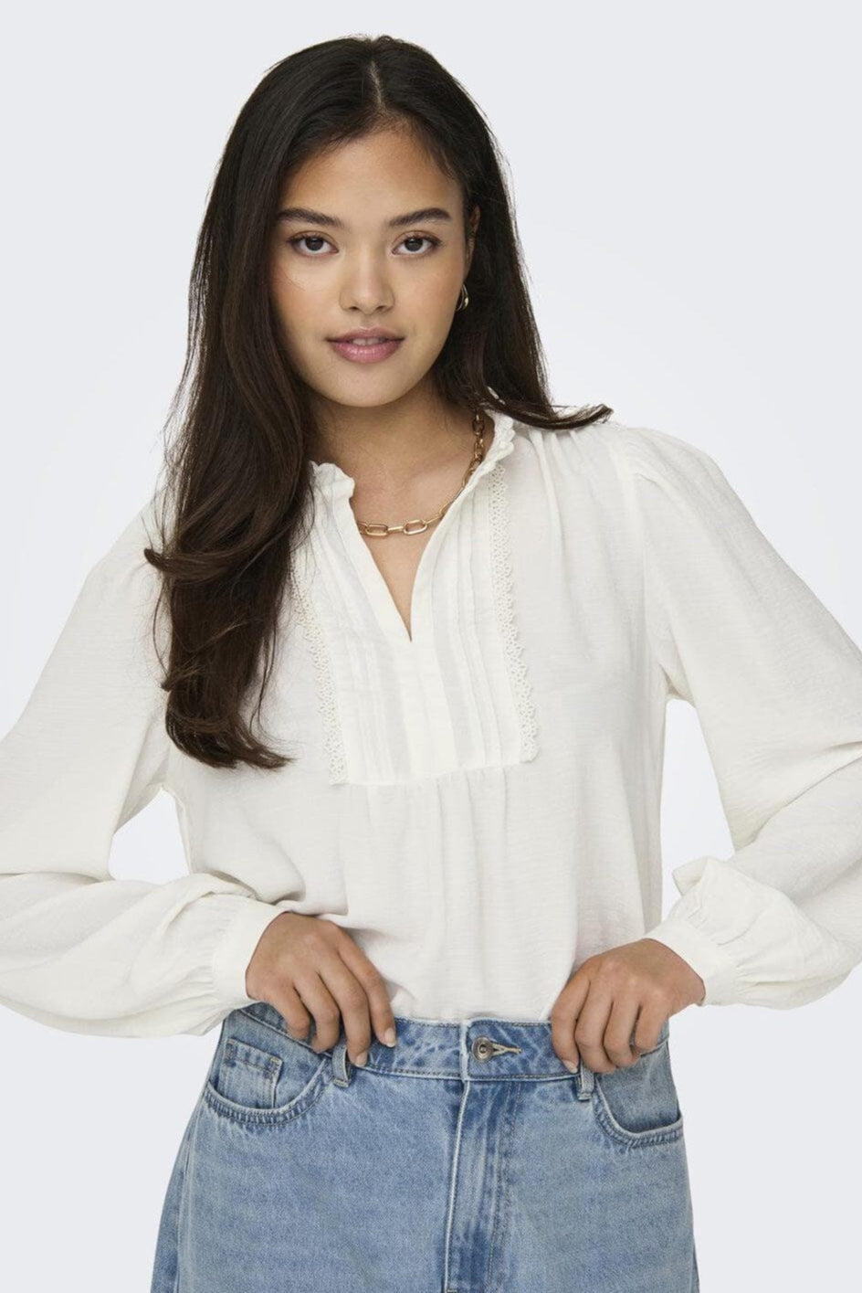 JDY Jdyrachel Life L/S Pintuck Top Kleur: 4505028 Cloud Dancer