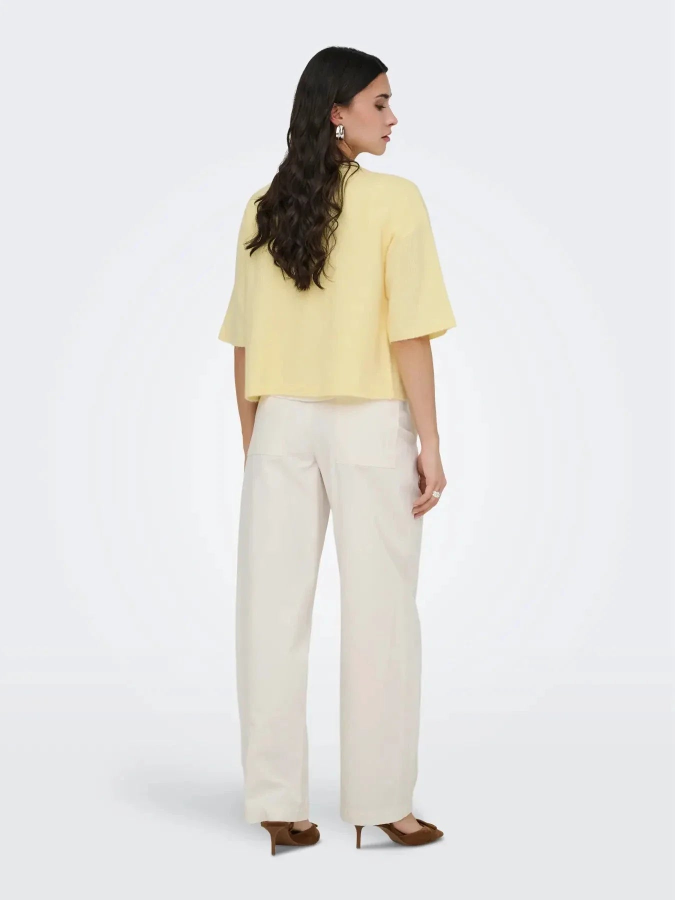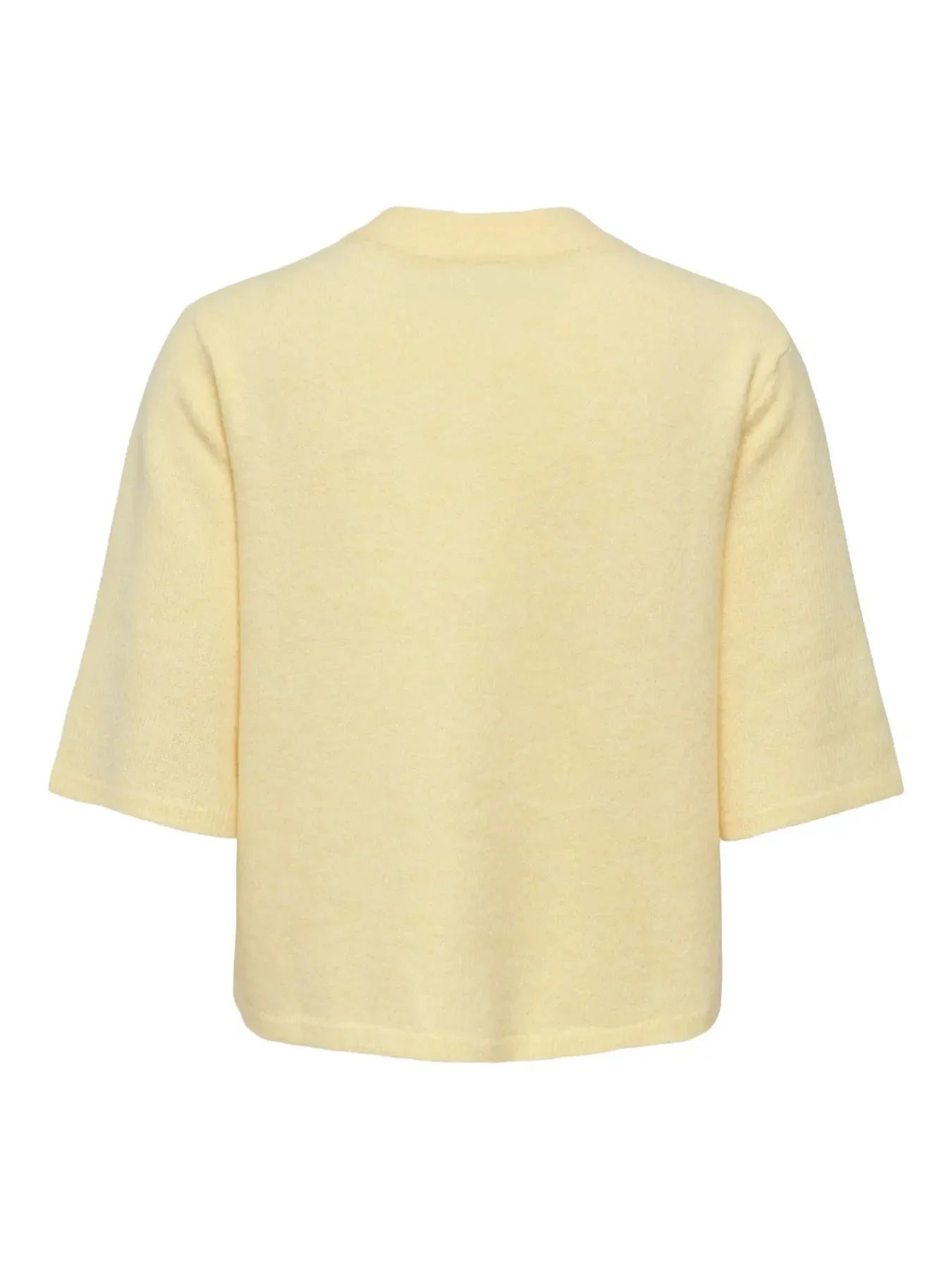 Vest van JDY in een romig gele tint met decoratieve zilverkleurige knopen. Het vest heeft 3/4-mouwen en een ronde halslijn.